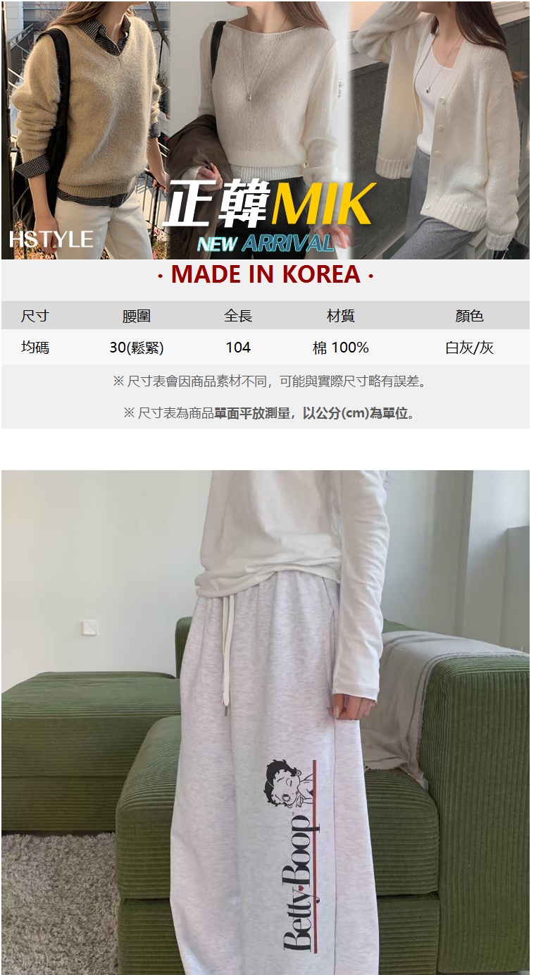 正韓運動褲 貝蒂聯名寬管長褲FOM1128-創翊韓都