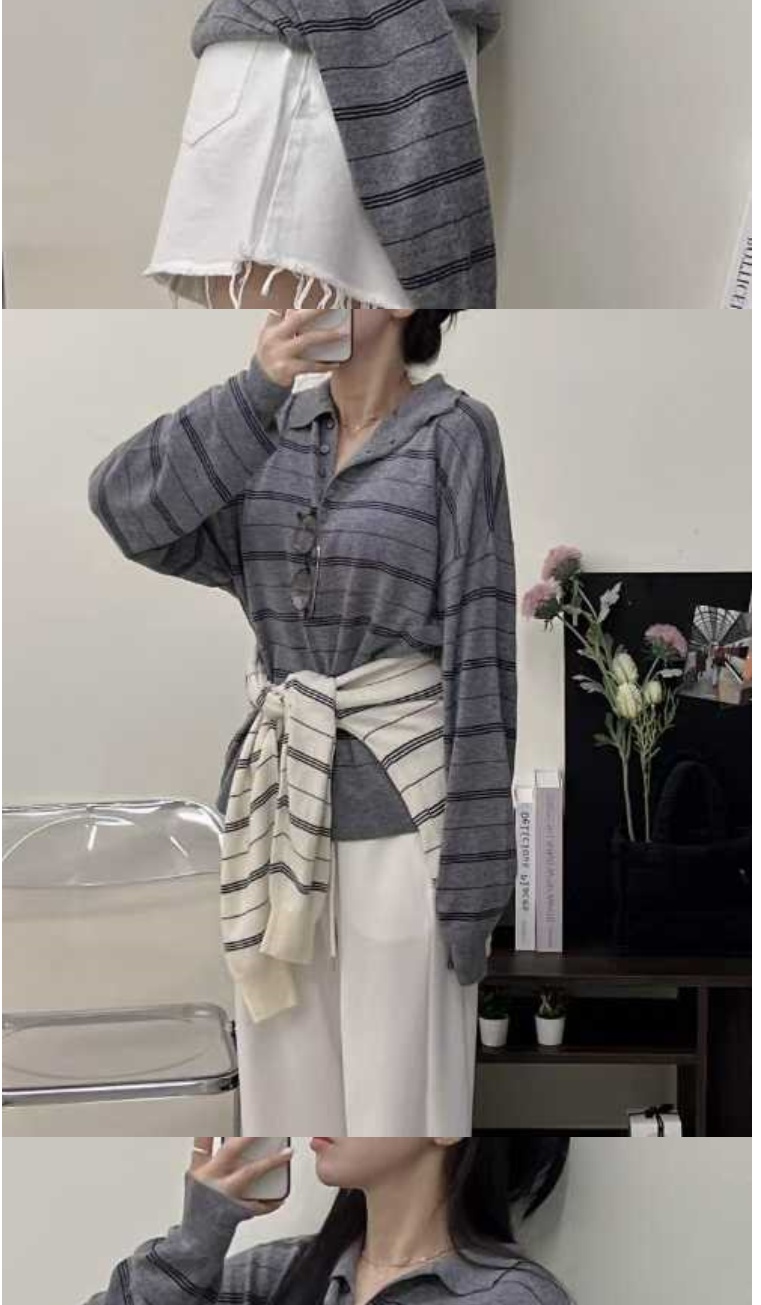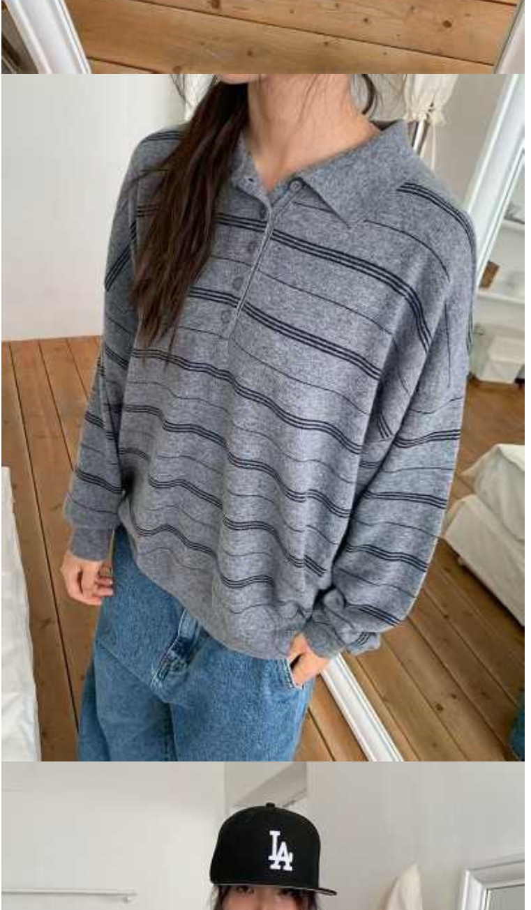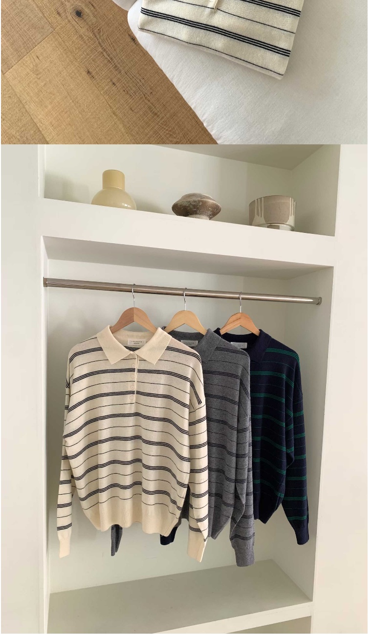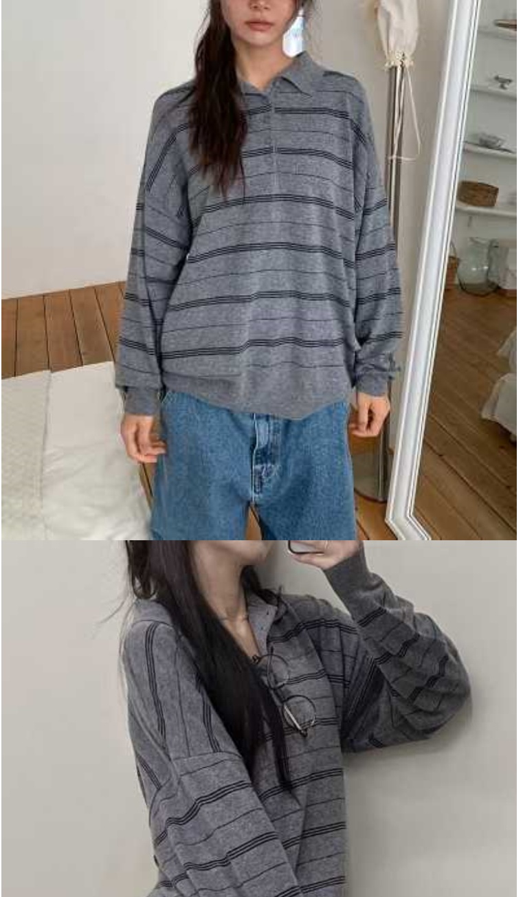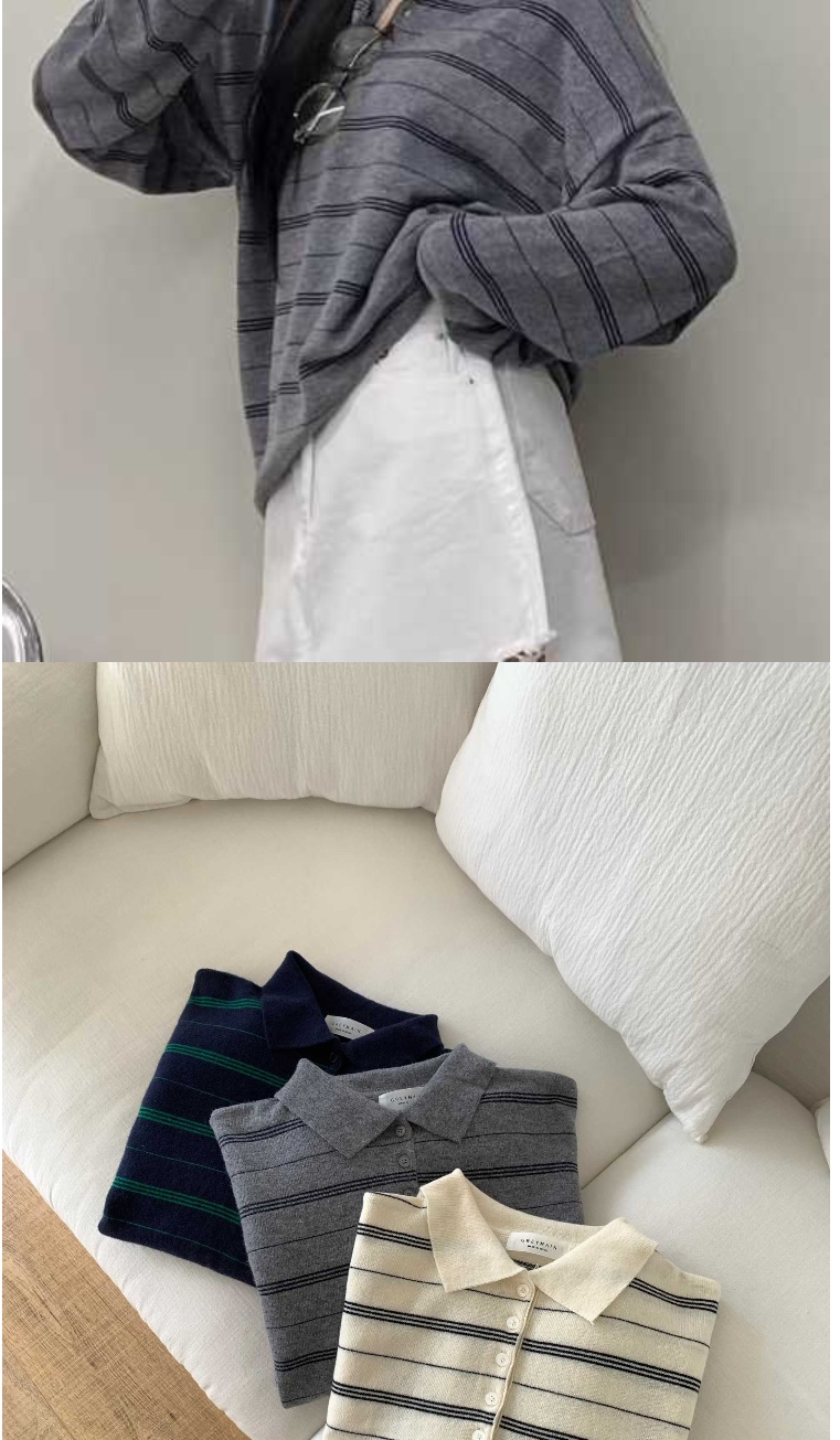 正韓女上衣 翻領條紋長袖針織衫GMT1004-創翊韓都