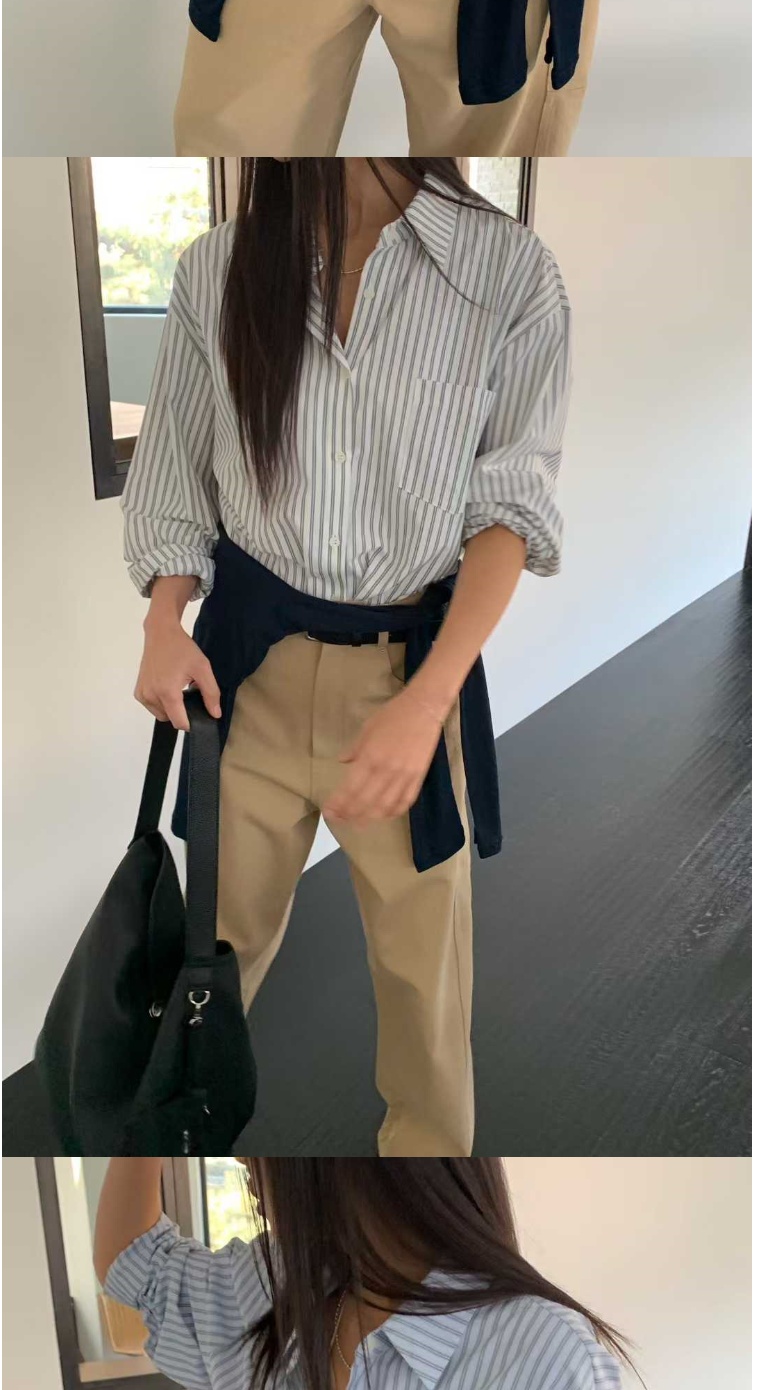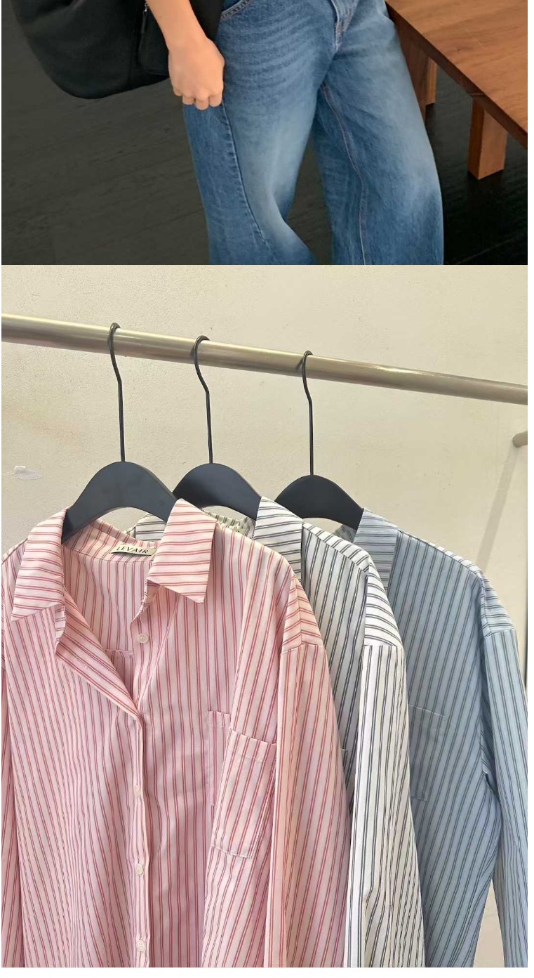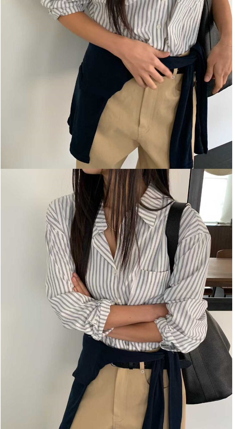 正韓女上衣 天絲條紋長袖襯衫LEV1003-創翊韓都