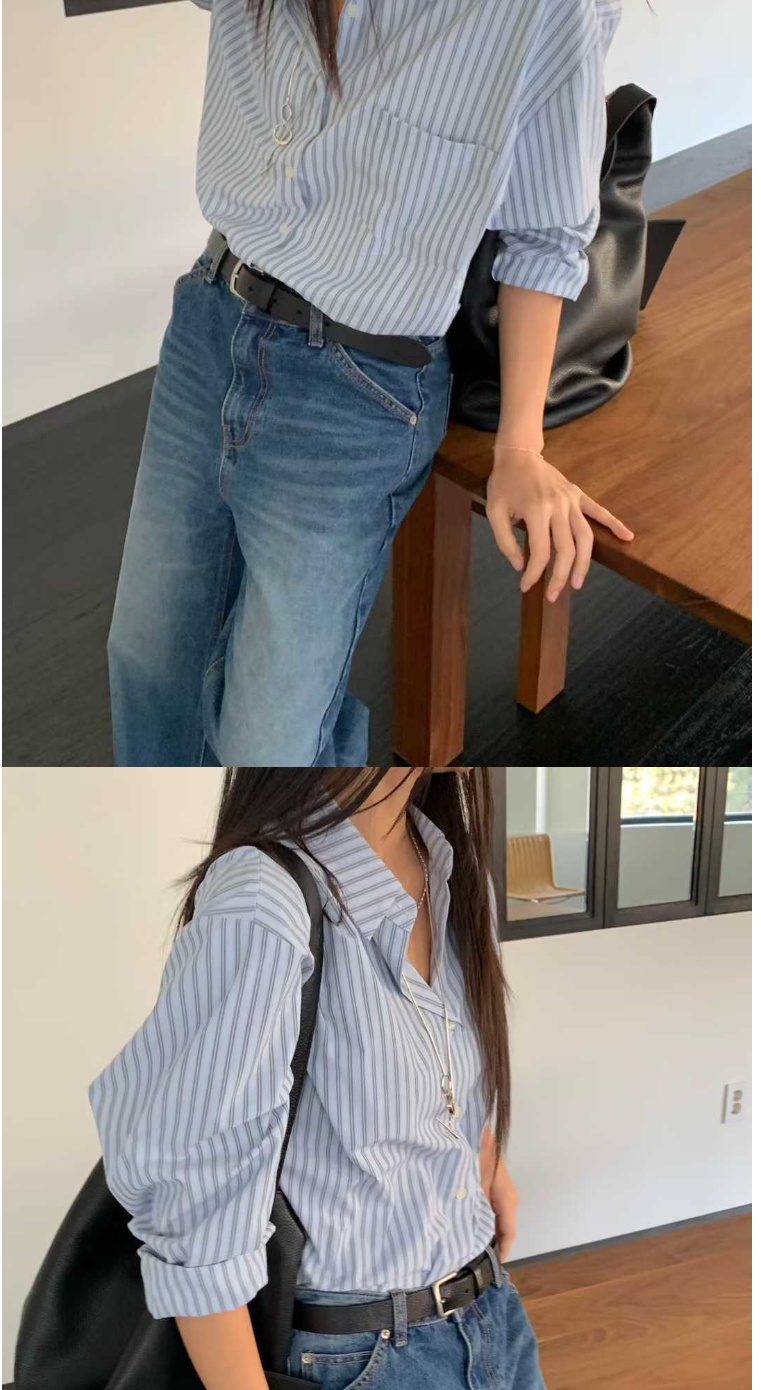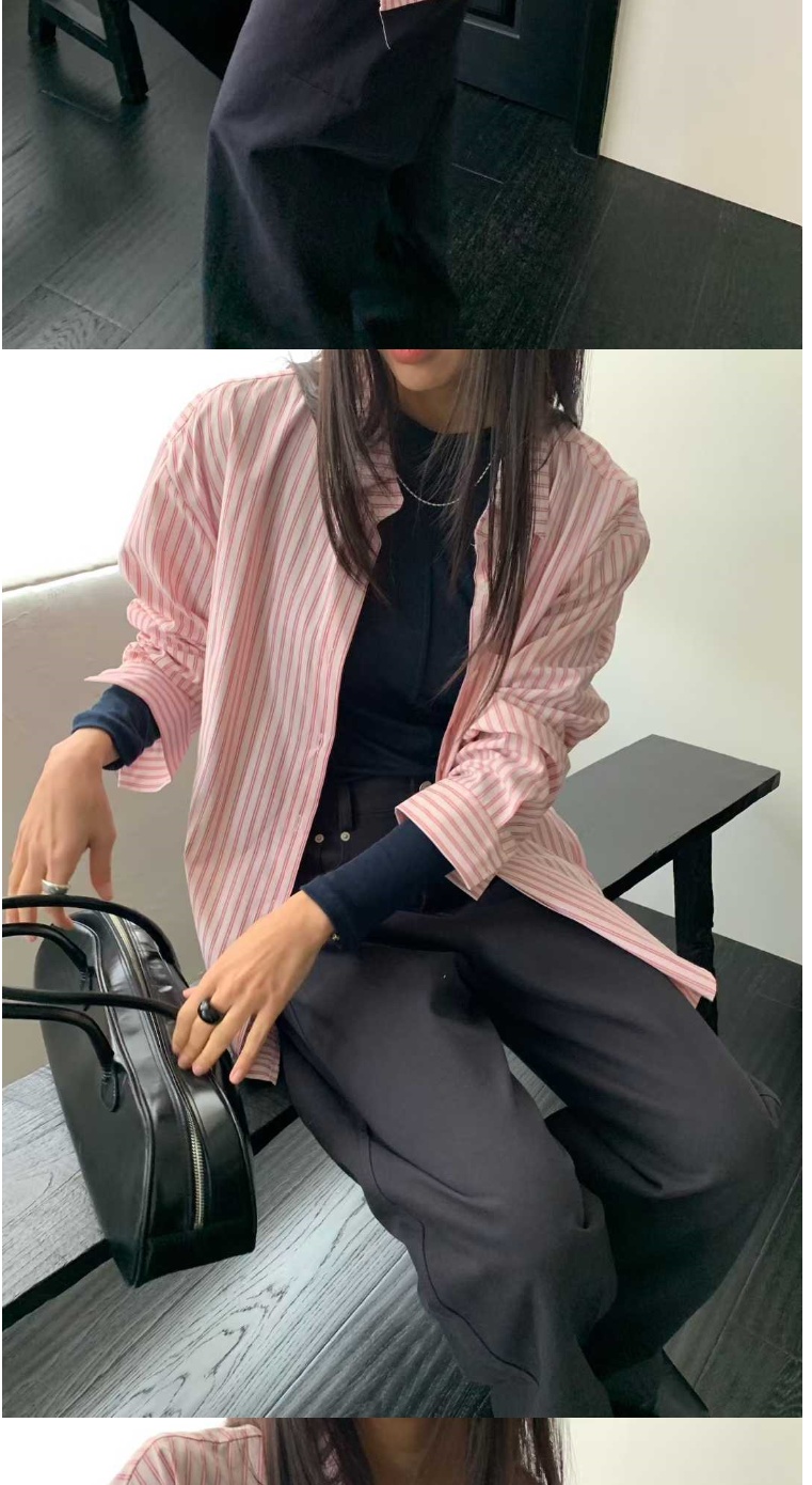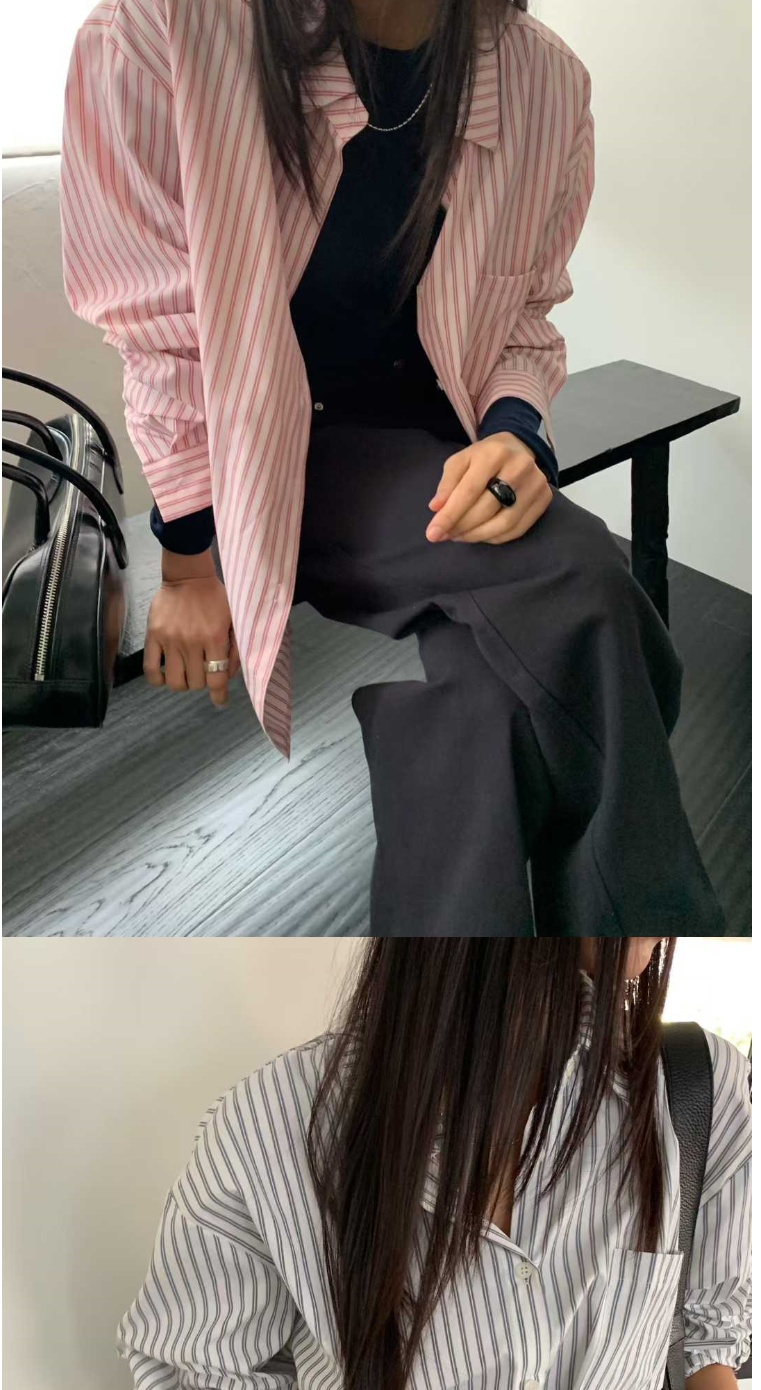 正韓女上衣 天絲條紋長袖襯衫LEV1003-創翊韓都