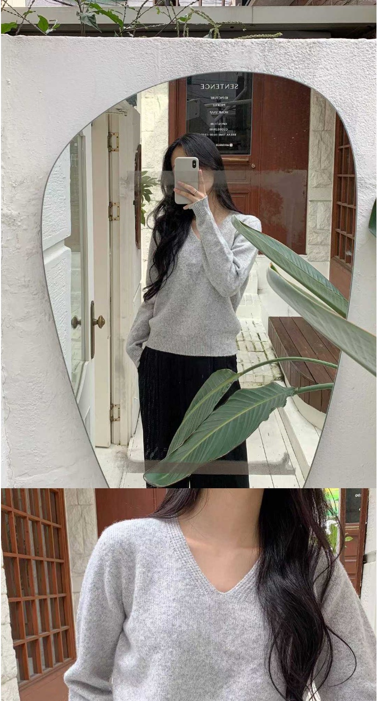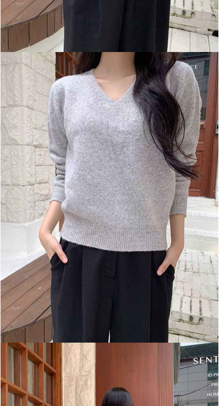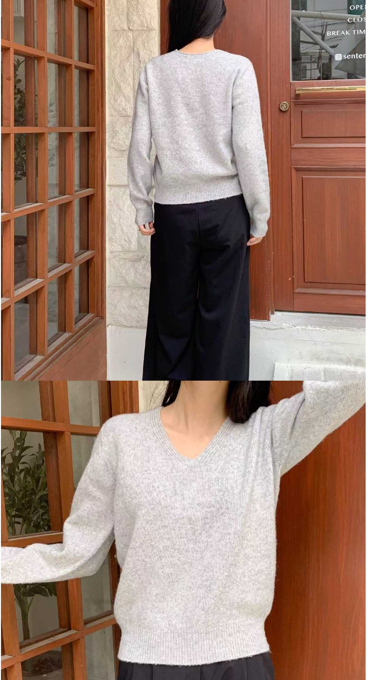 正韓女上衣 V領無縫長袖針織衫LSW1011-創翊韓都