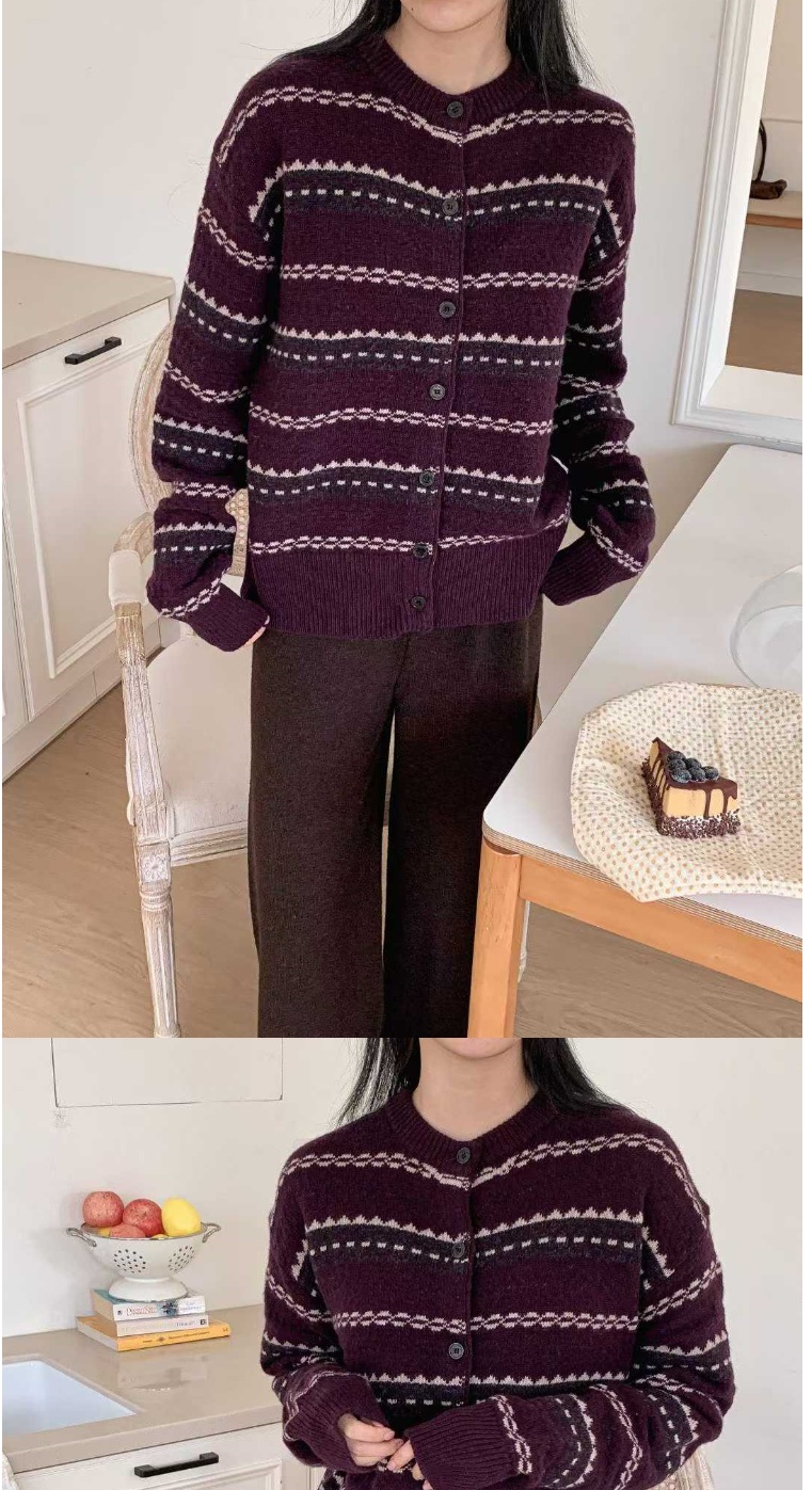 正韓針織上衣 條紋長袖針織衫BBO1024-創翊韓都