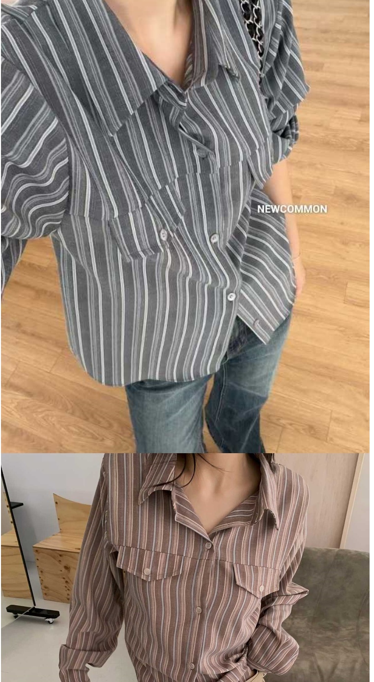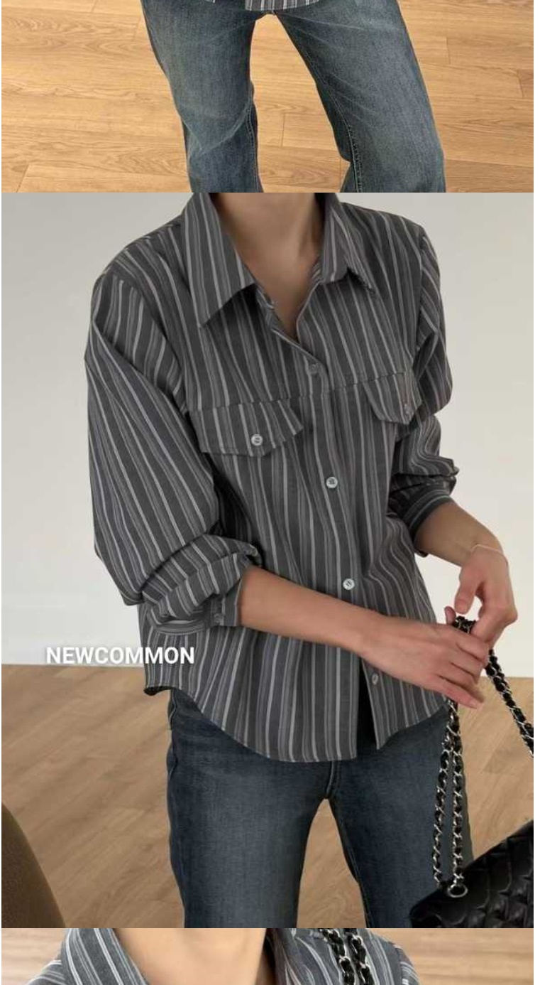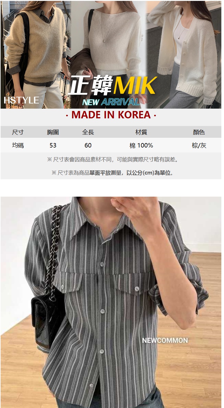 正韓女上衣 條紋長袖襯衫NCM1003-創翊韓都