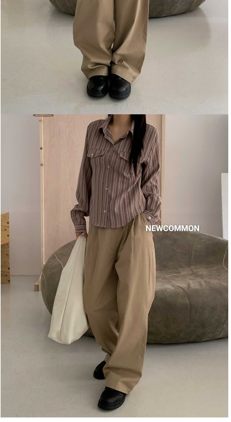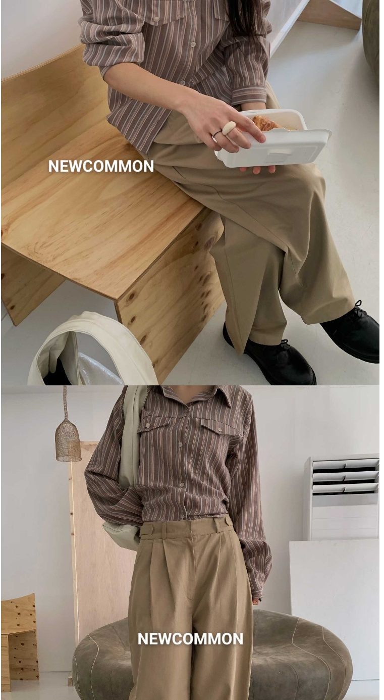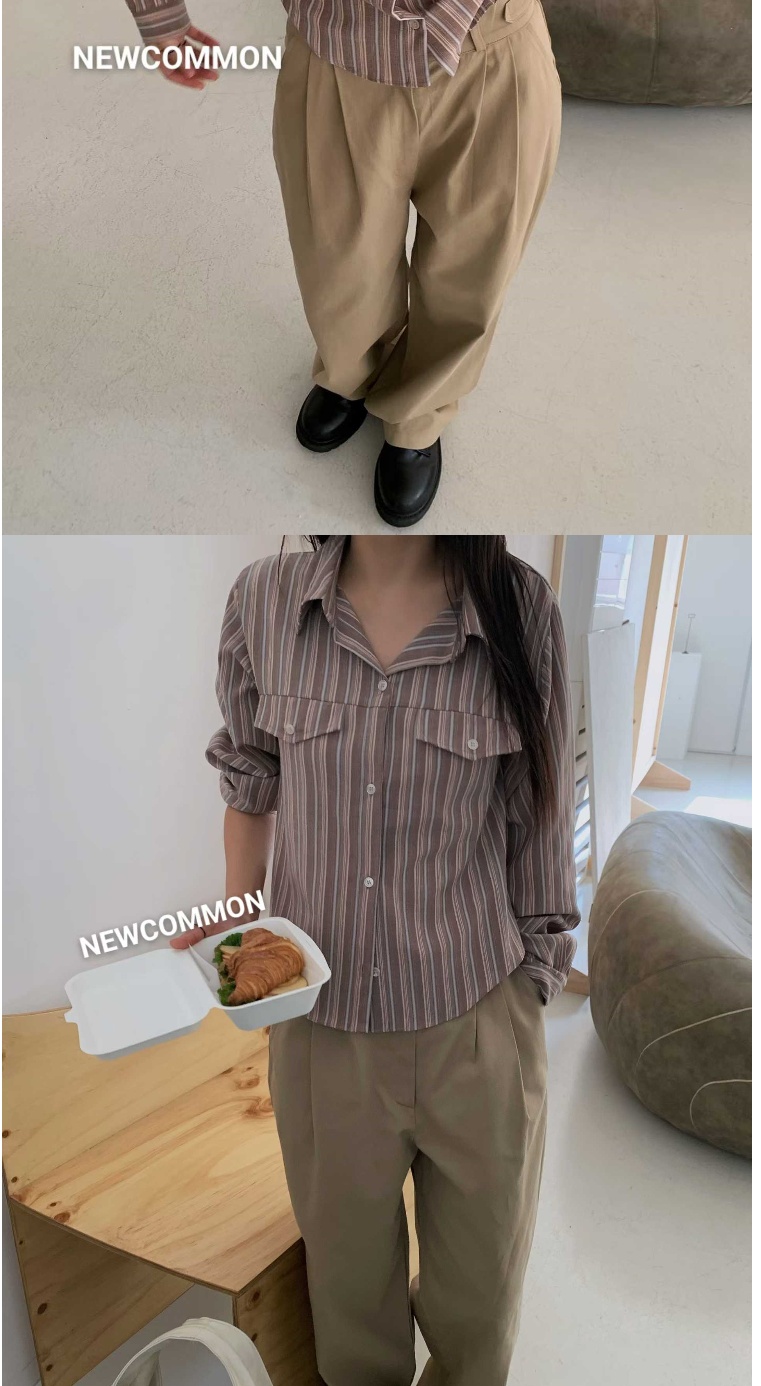 正韓女上衣 條紋長袖襯衫NCM1003-創翊韓都
