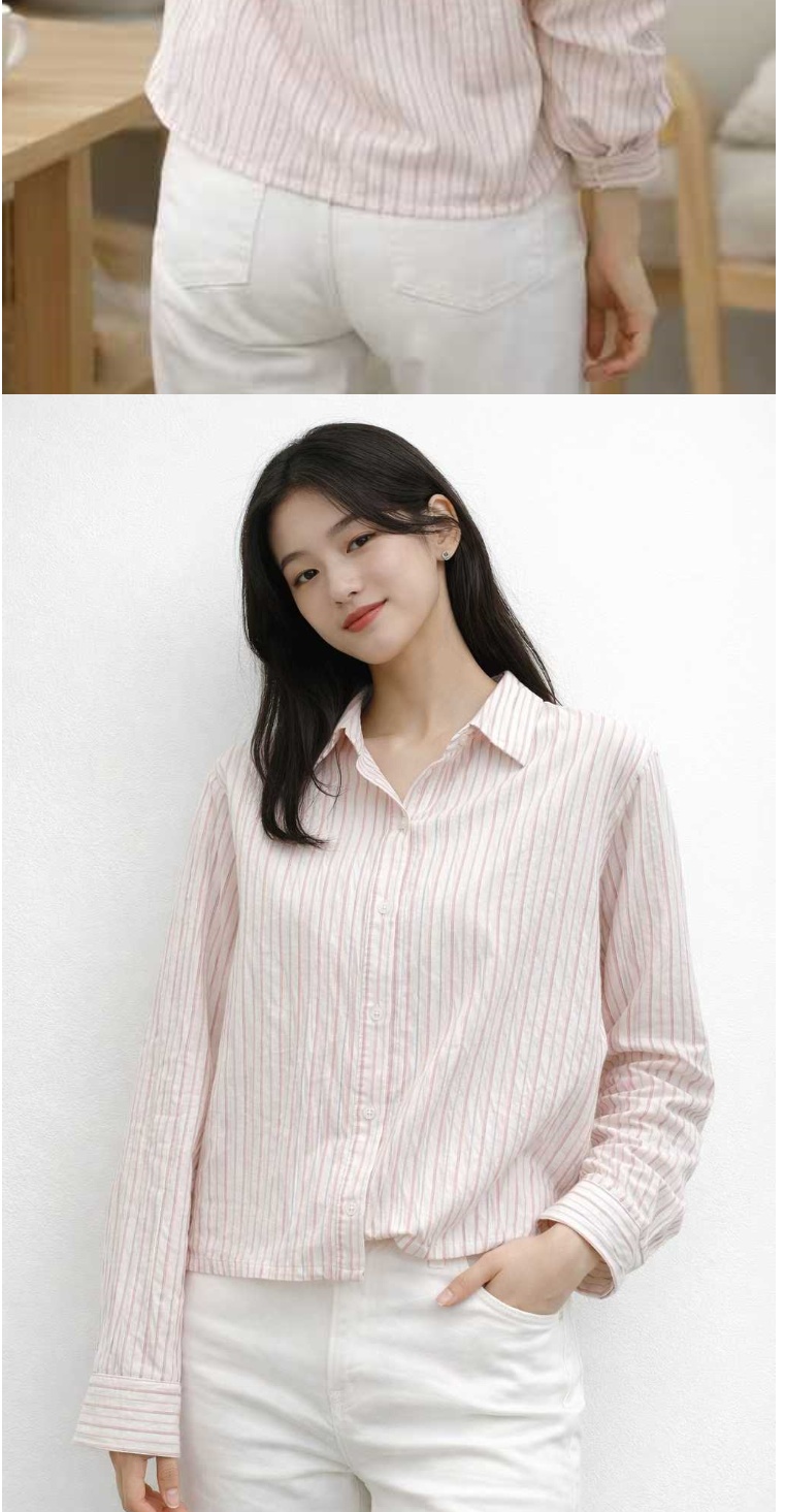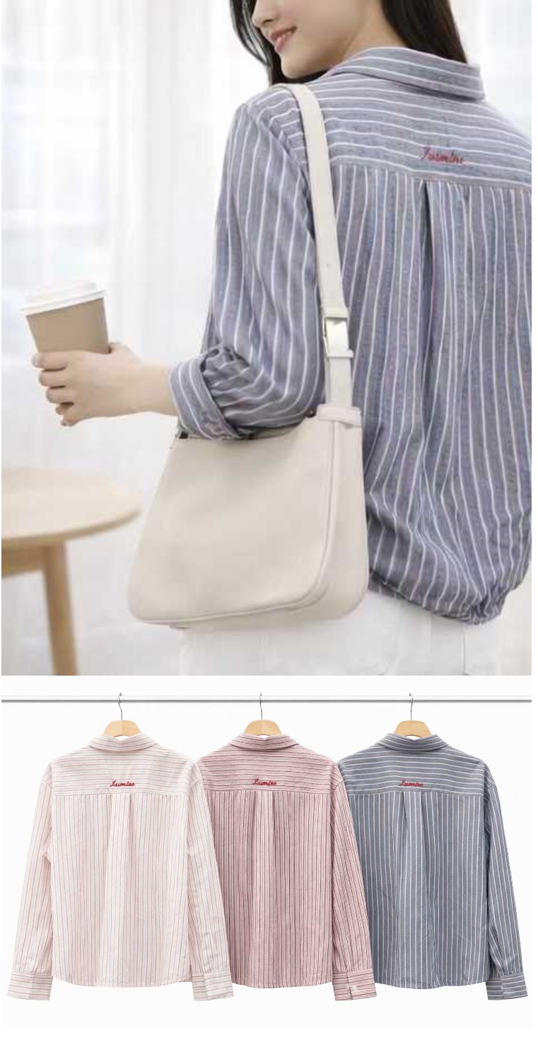 正韓女上衣 刺繡條紋長袖短款襯衫OPG1023-創翊韓都