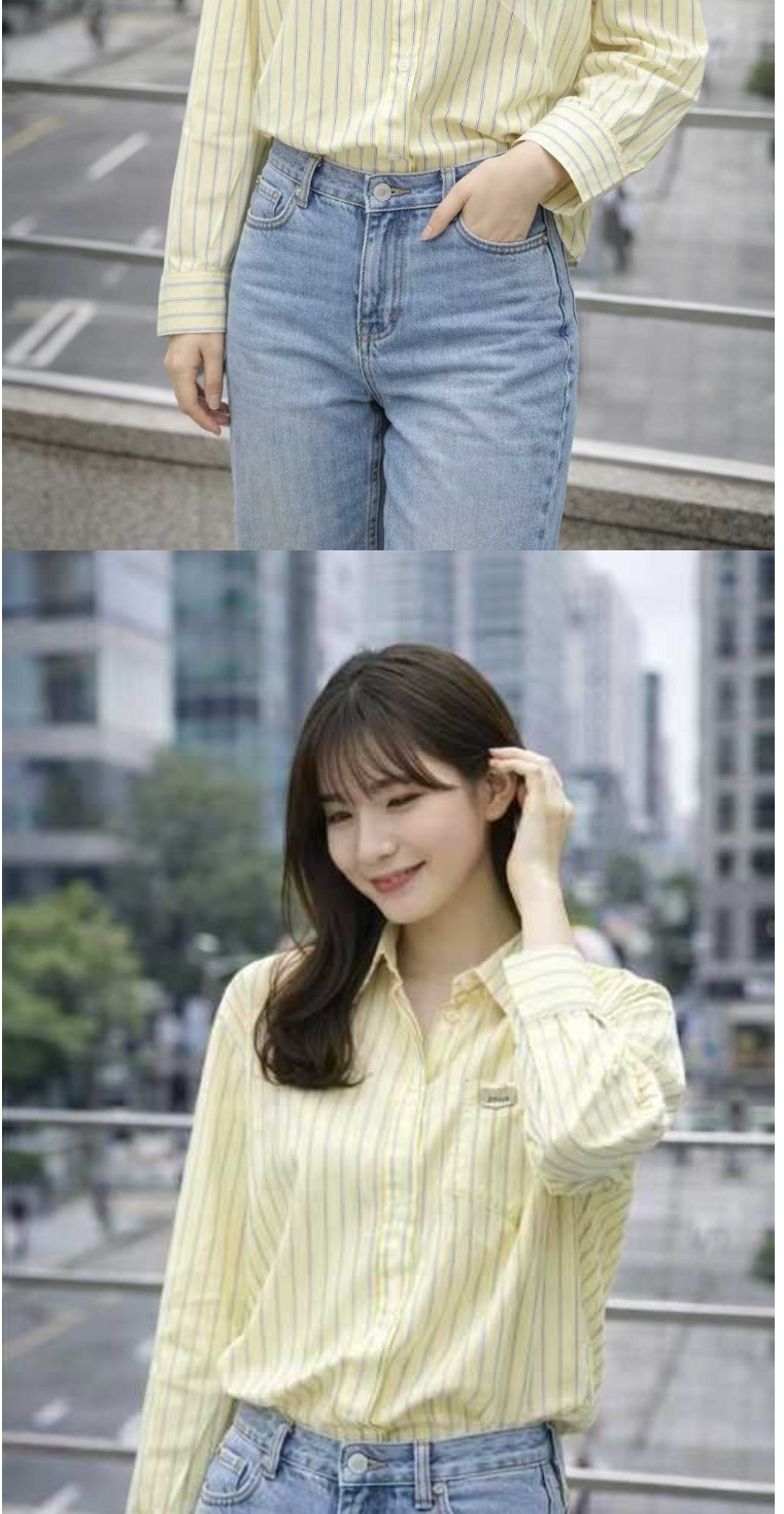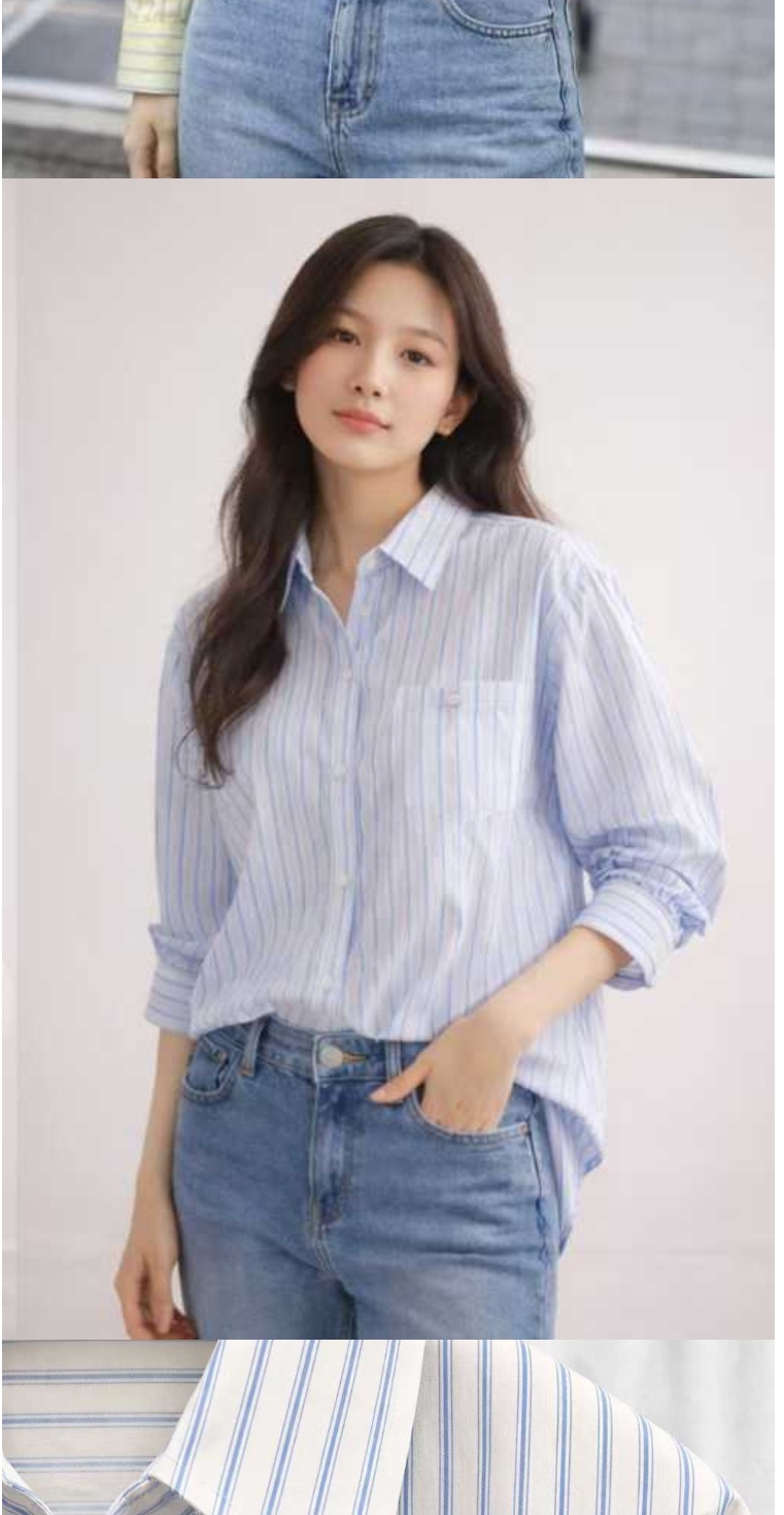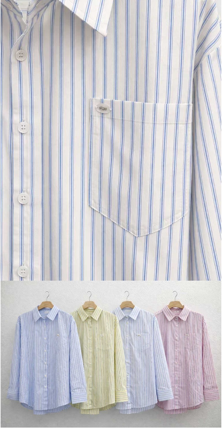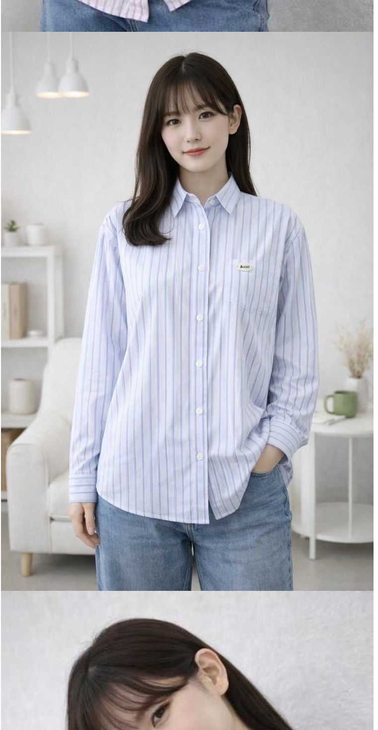 正韓女上衣 條紋長袖襯衫OPG1026-創翊韓都