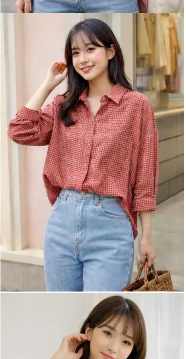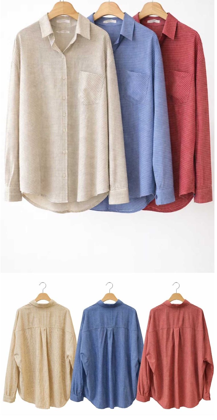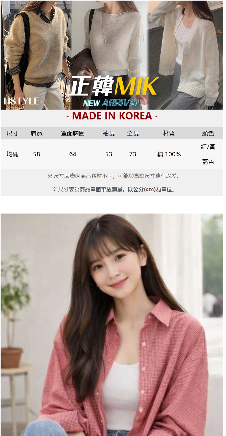 正韓女上衣 格紋長袖襯衫OPG1027-創翊韓都
