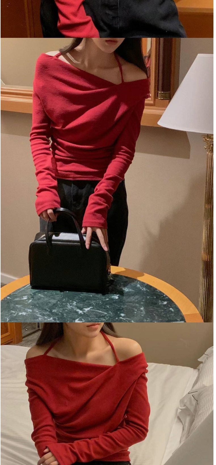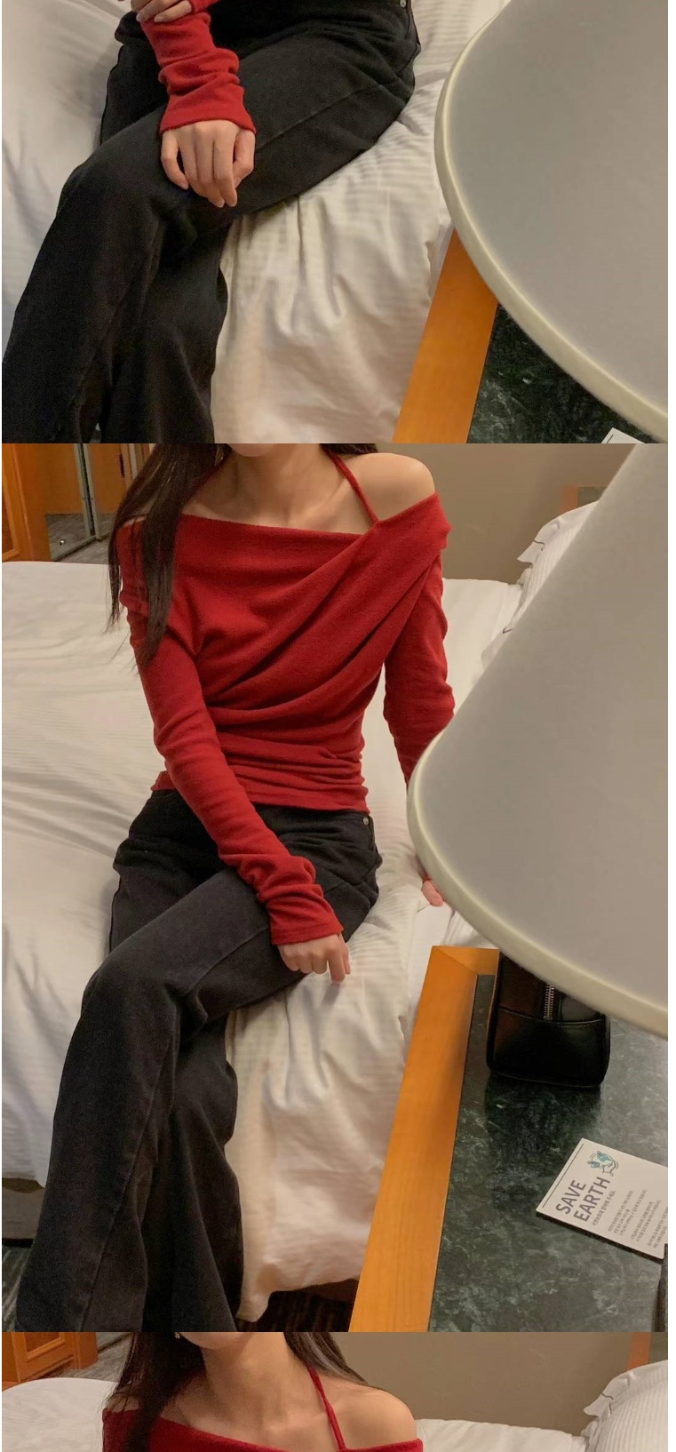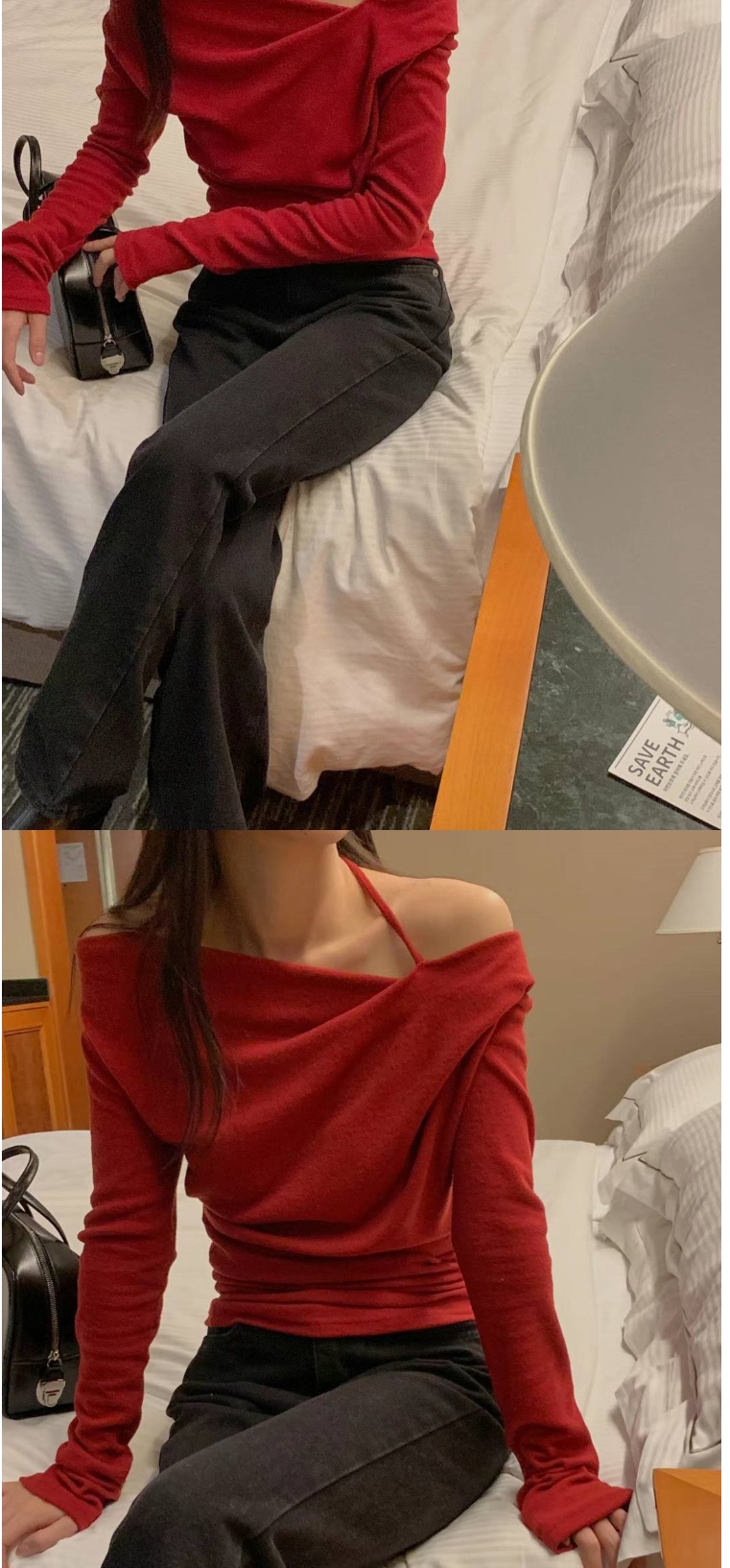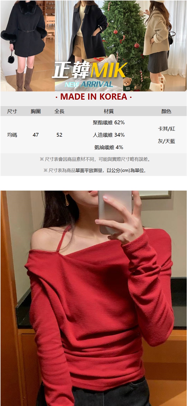 正韓女上衣 露肩長袖T恤OSR1079-創翊韓都