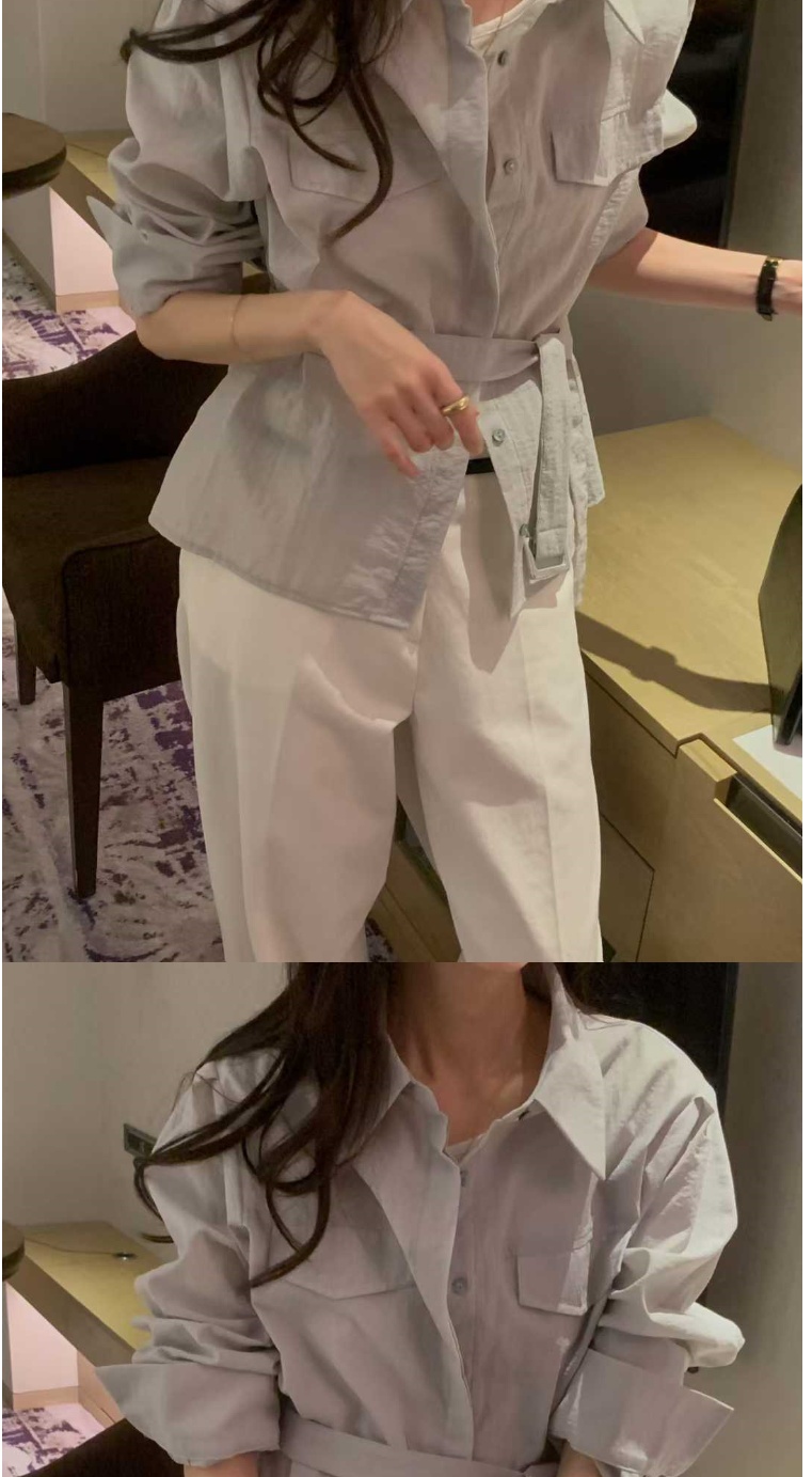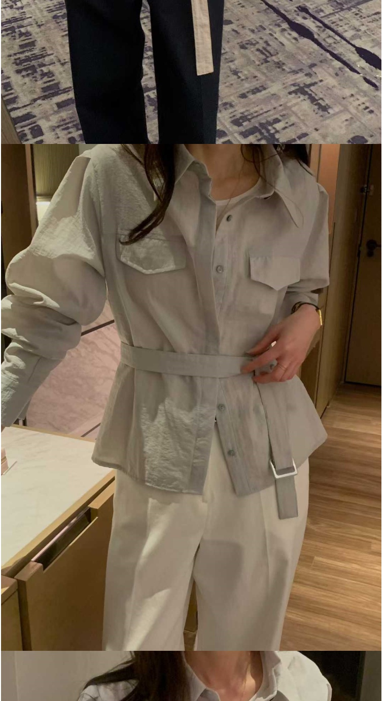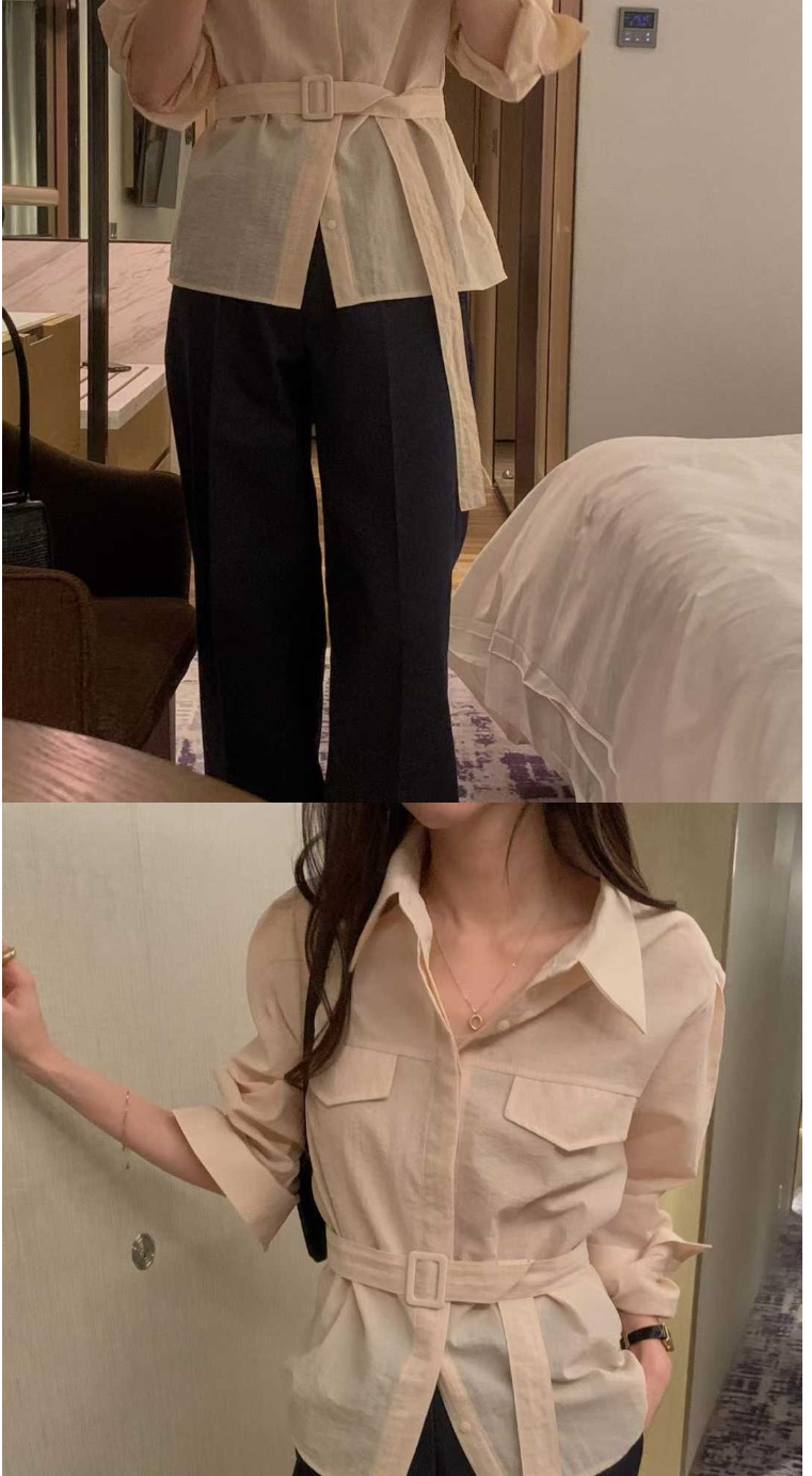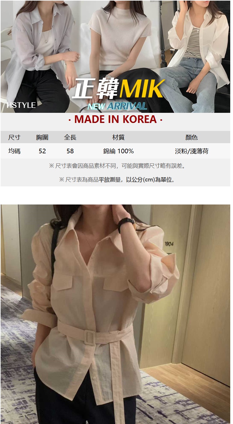 正韓女上衣 腰帶長袖襯衫OSR1082-創翊韓都