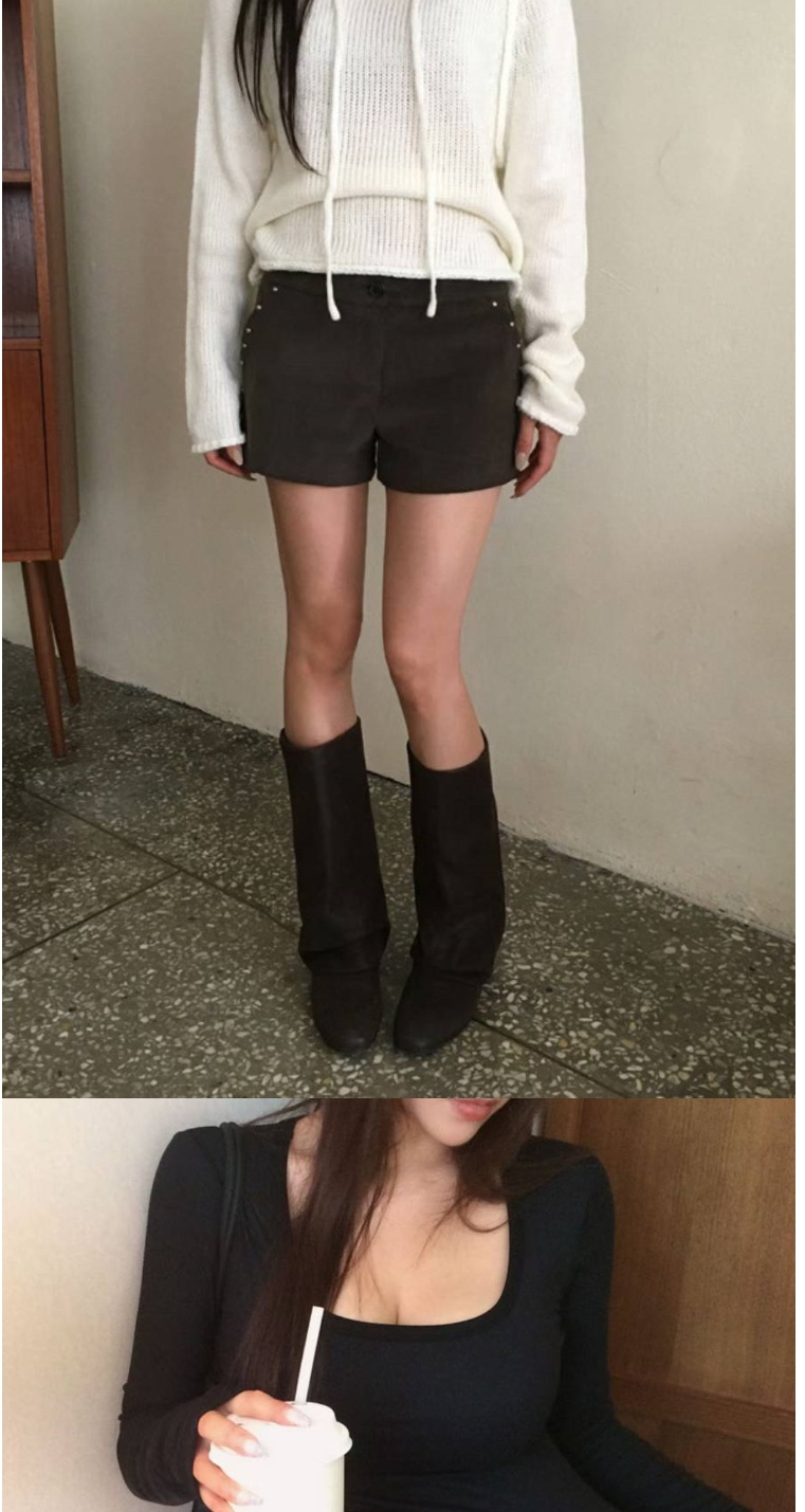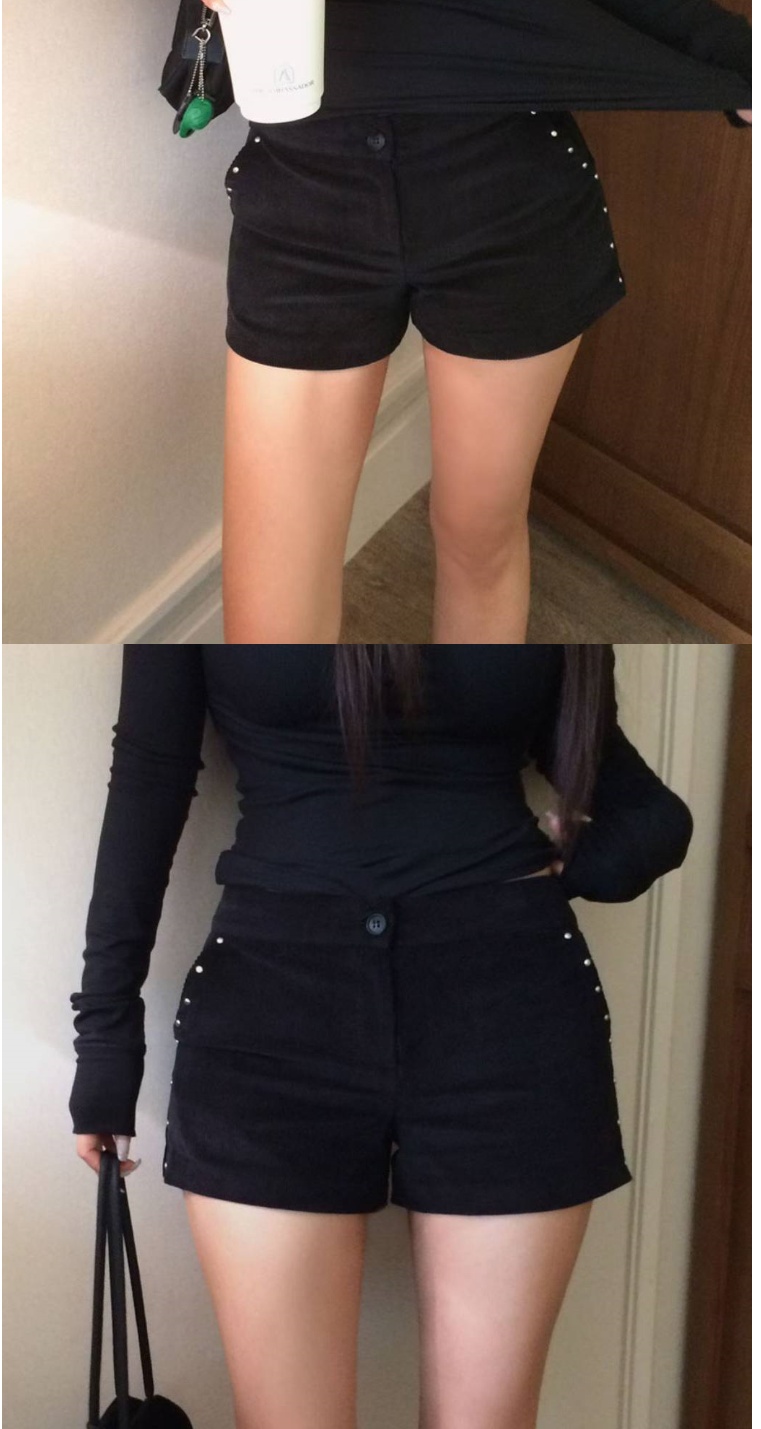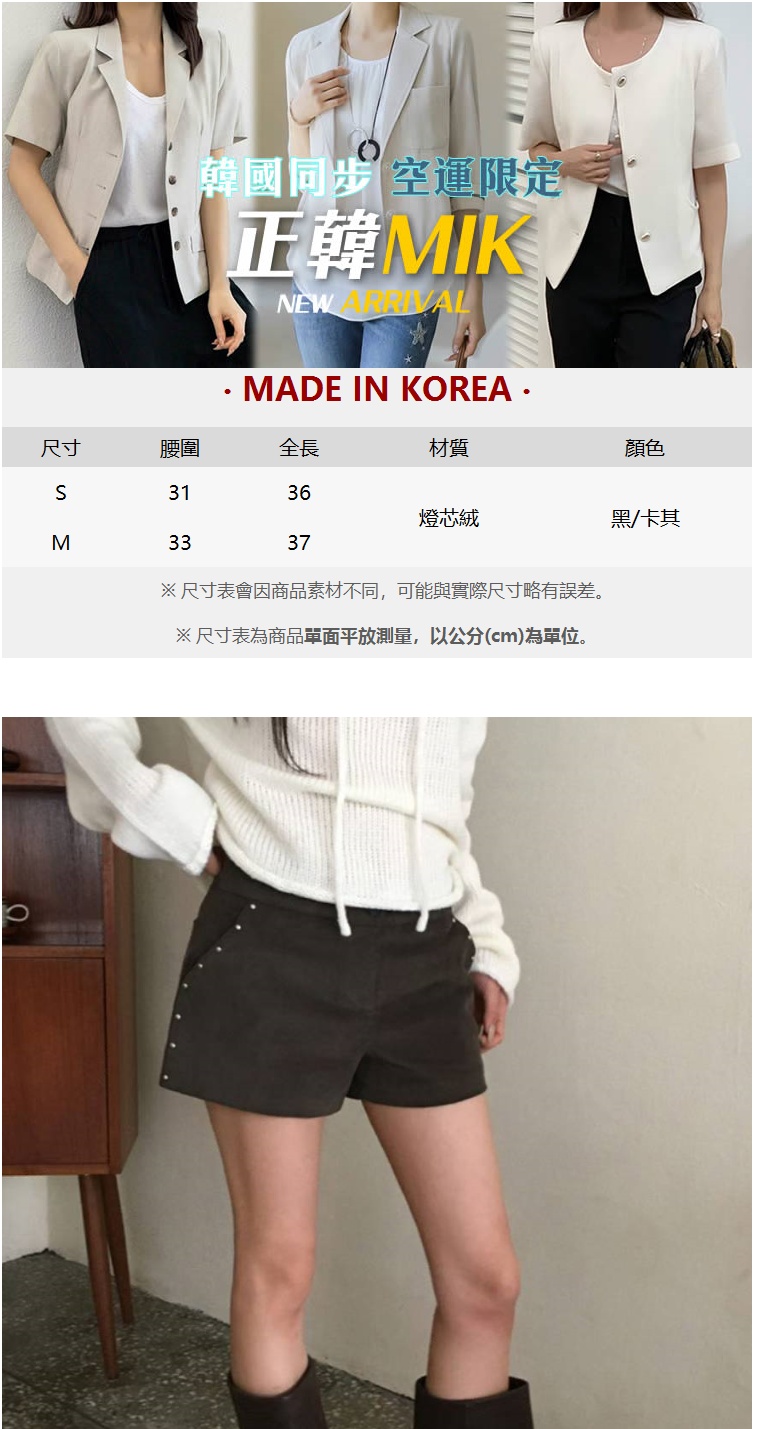 正韓短褲 鉚釘科林短褲PLE1001-創翊韓都