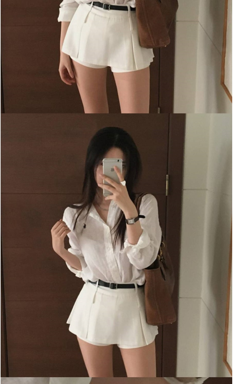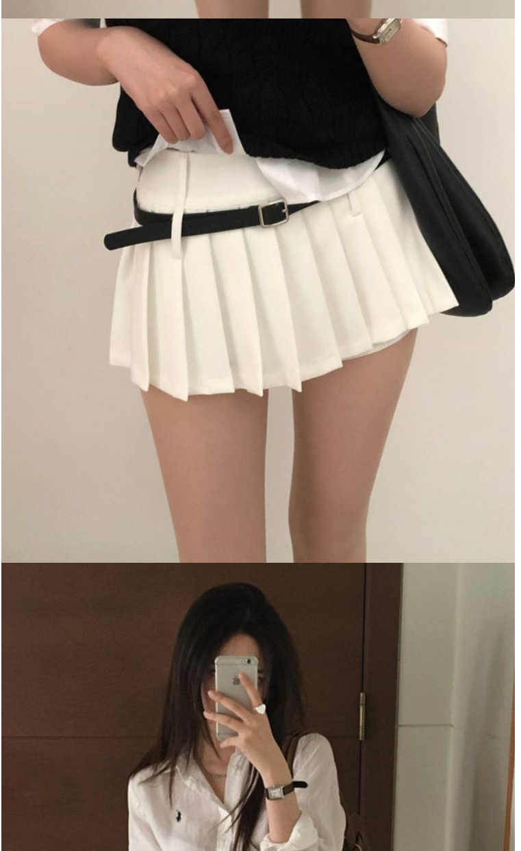 正韓短裙 高腰內襯百摺短裙WHN1014-創翊韓都
