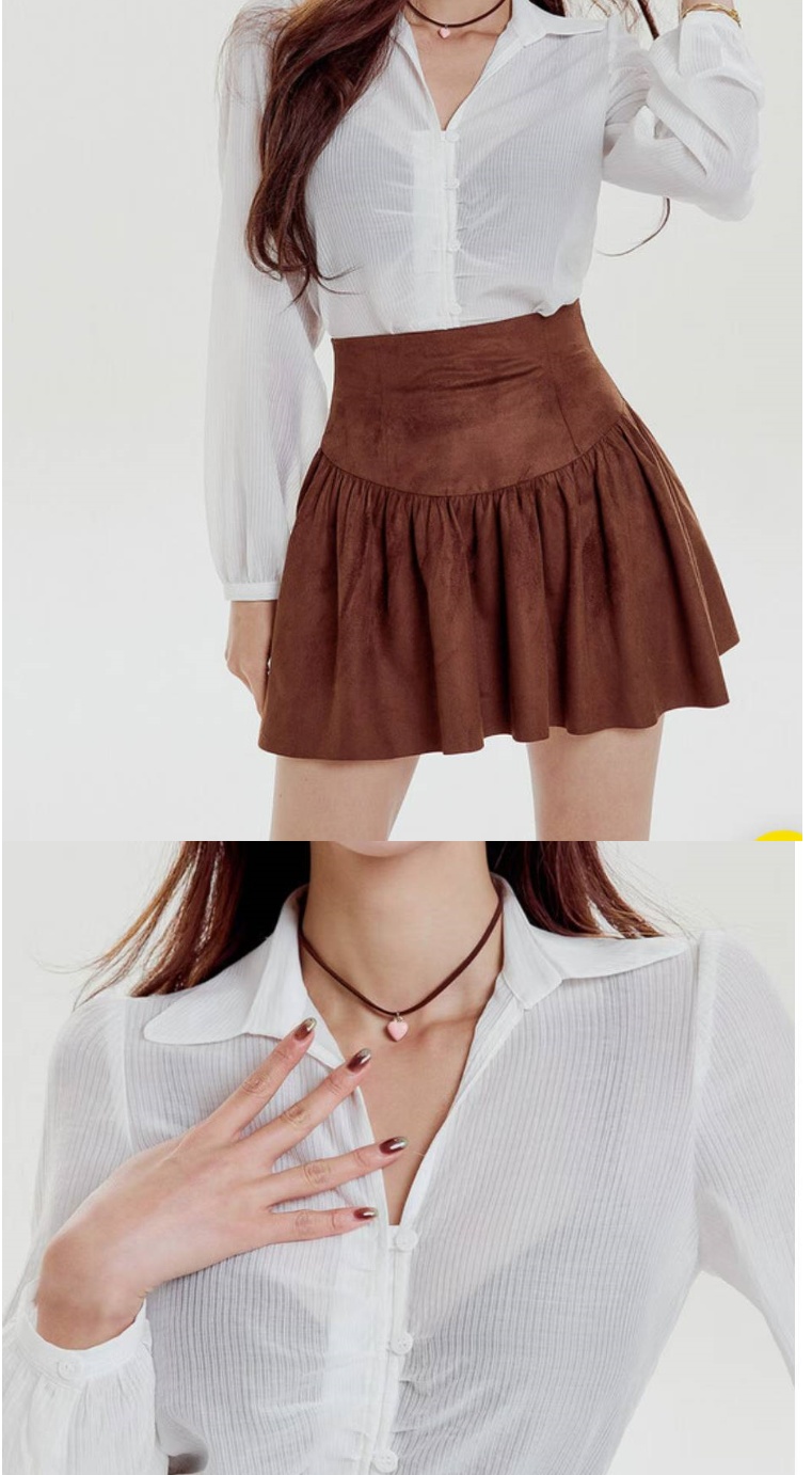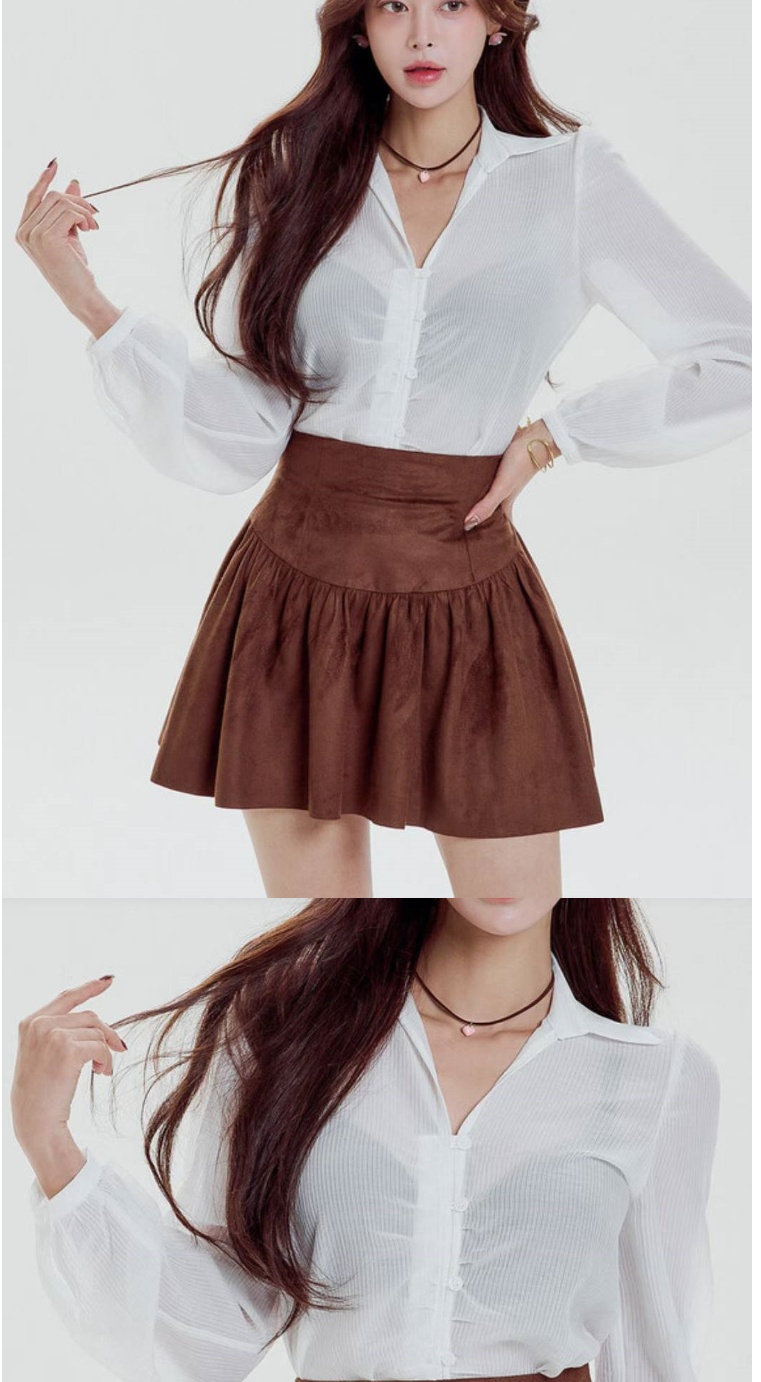 正韓女上衣 榛子長袖襯衫PLE1006-創翊韓都