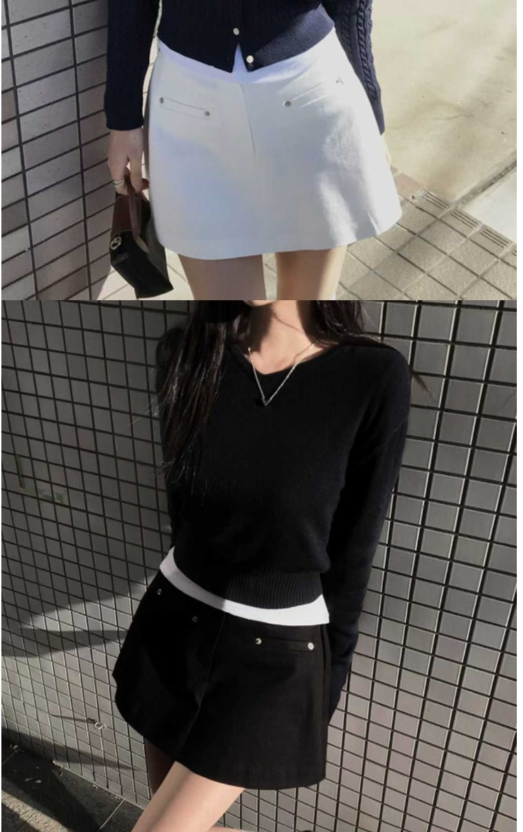 正韓短裙 安妮鉚釘短裙PLE1015-創翊韓都