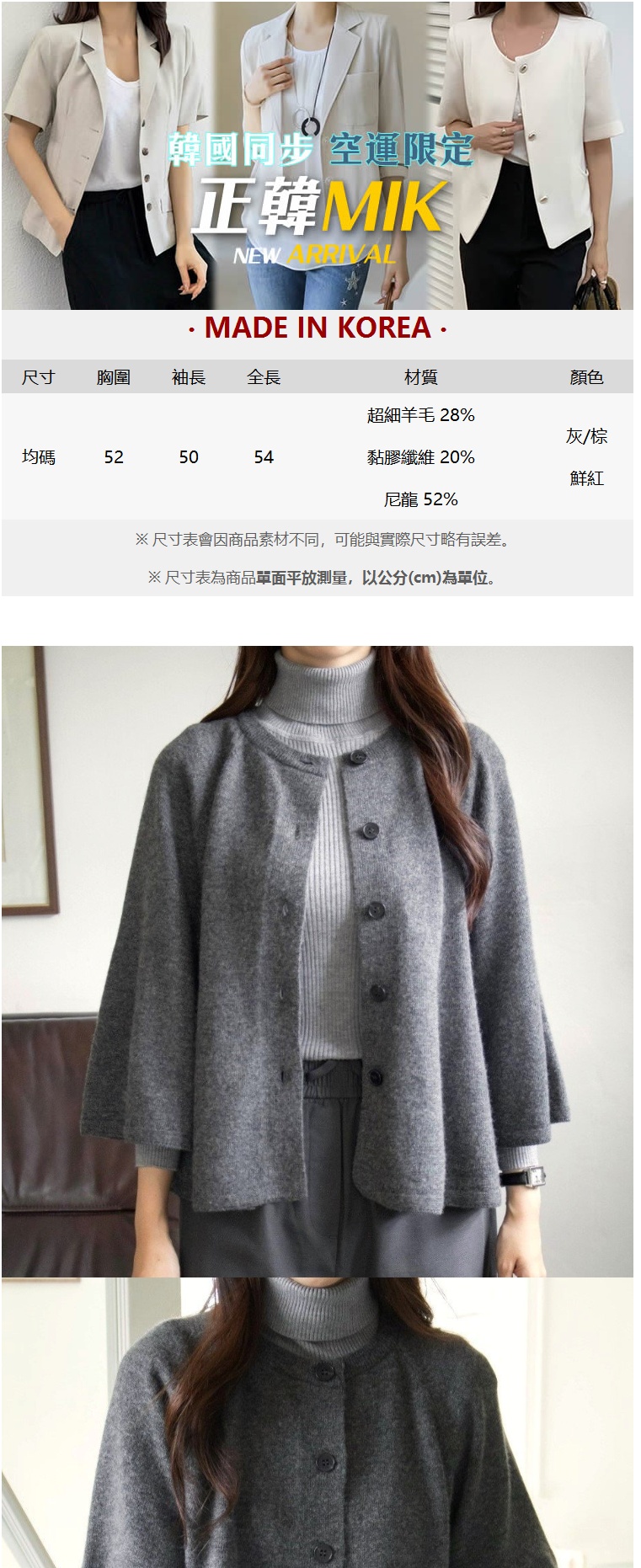 正韓罩衫 喀什米爾羊毛針織外套SOM1066-創翊韓都