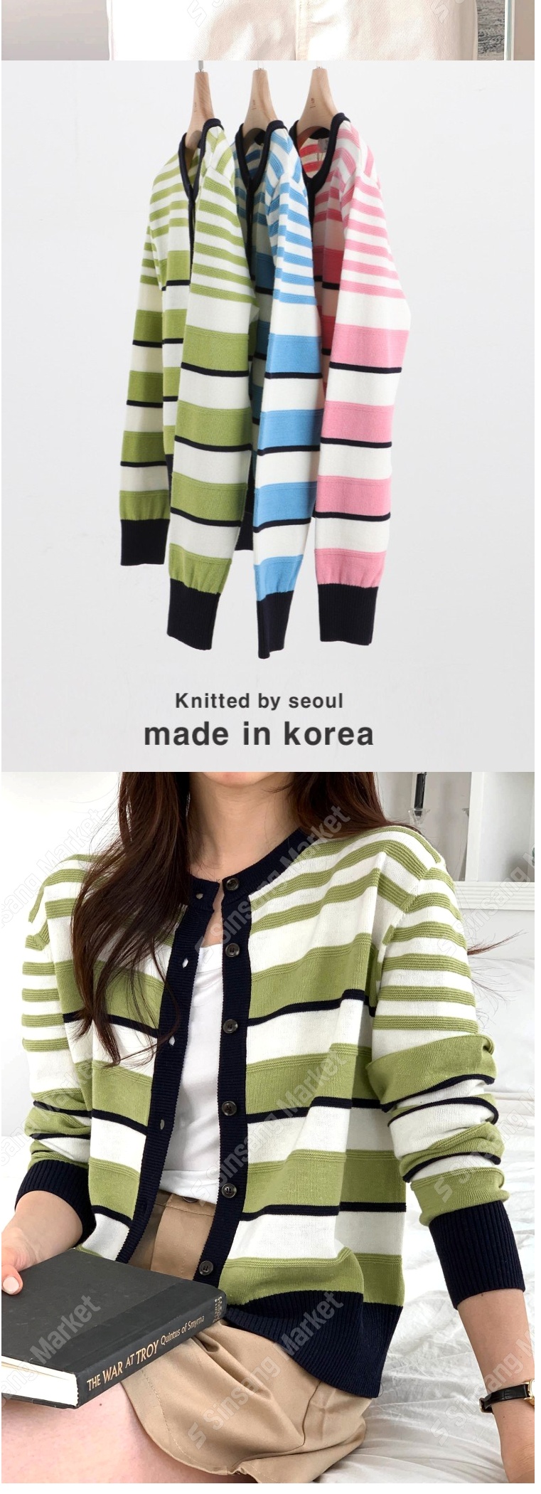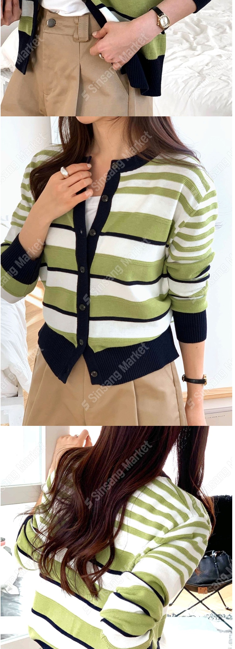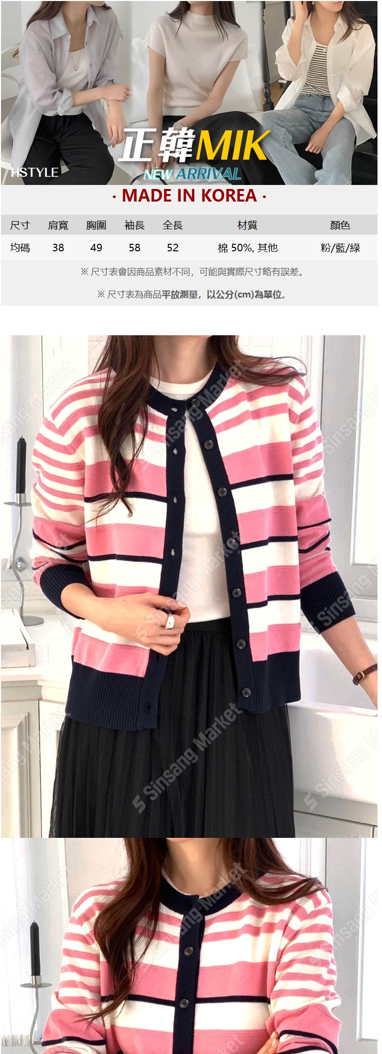 正韓罩衫 拼色條紋針織外套SOM1106-創翊韓都
