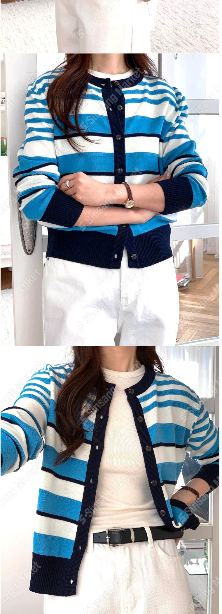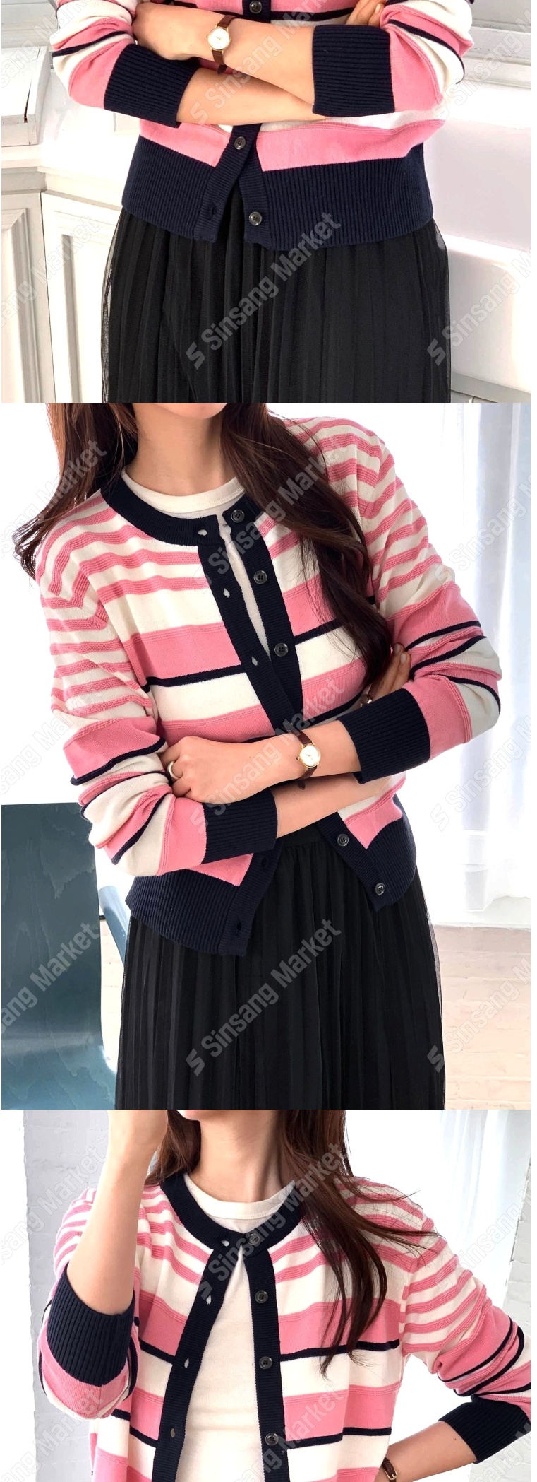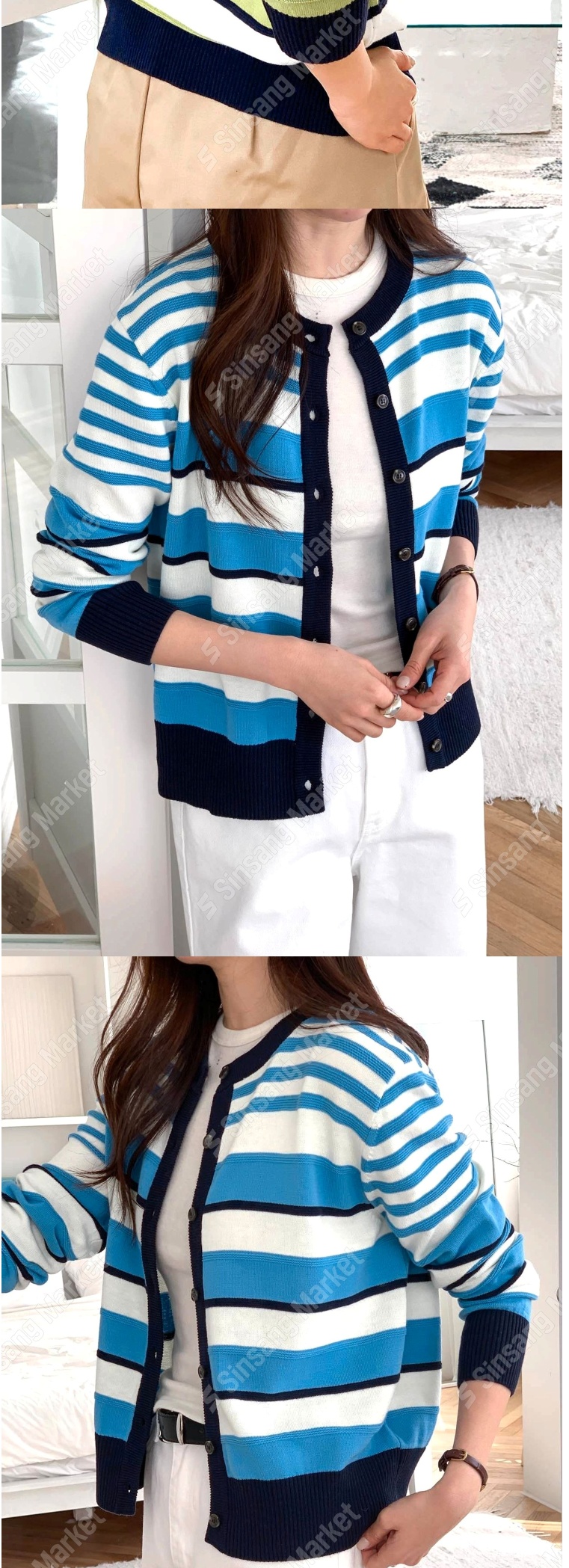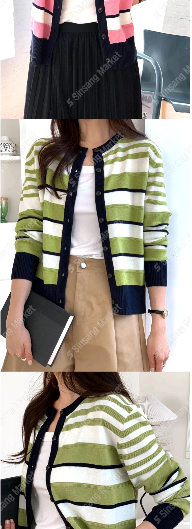 正韓罩衫 拼色條紋針織外套SOM1106-創翊韓都