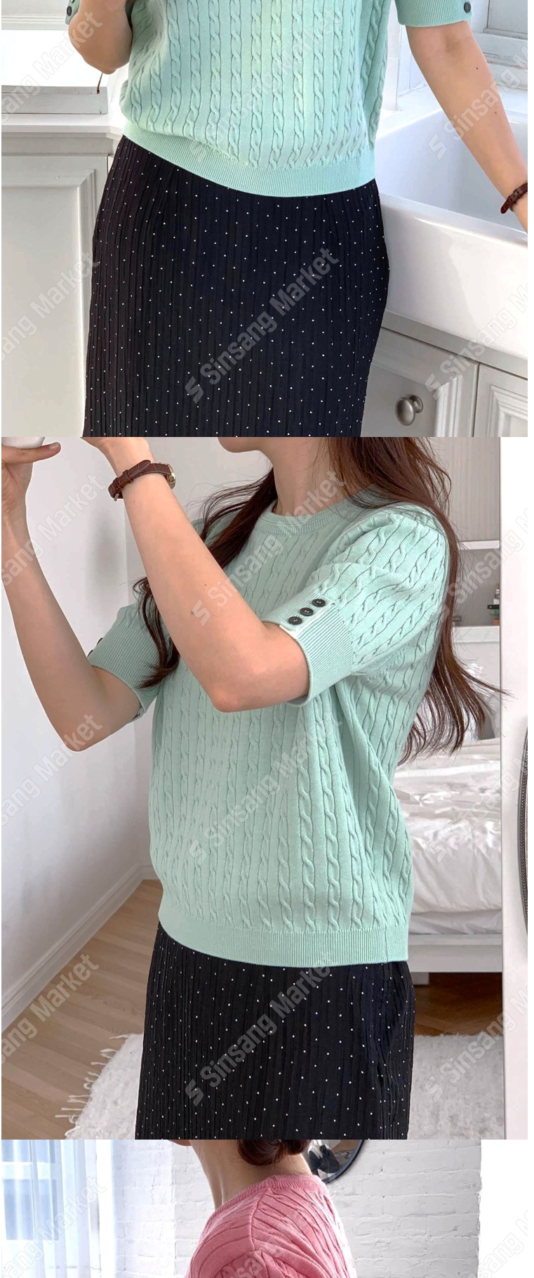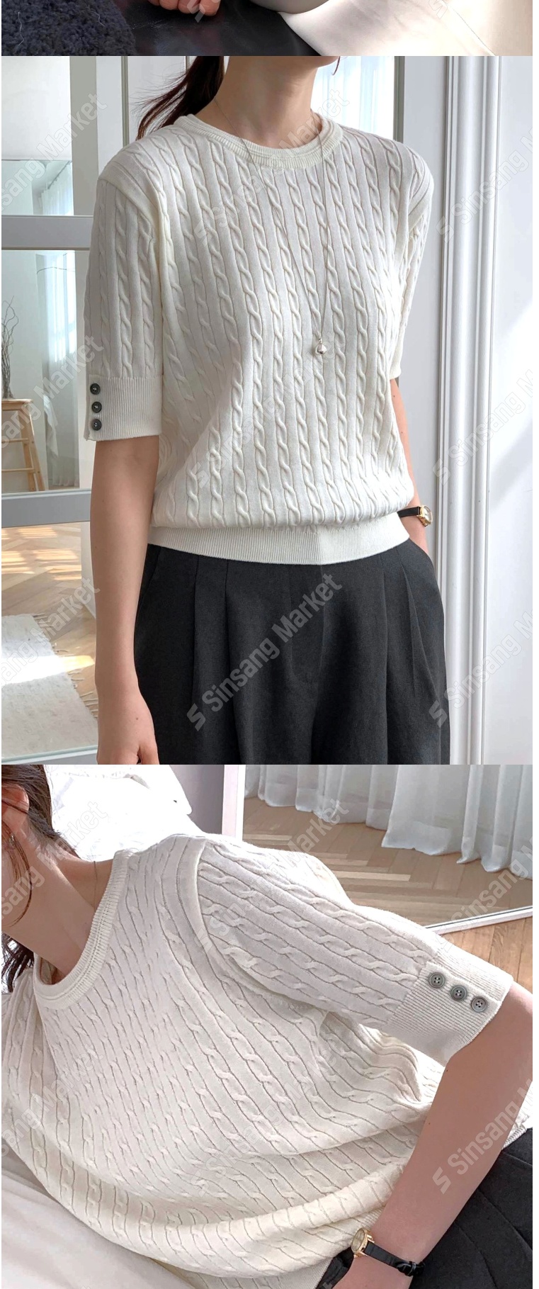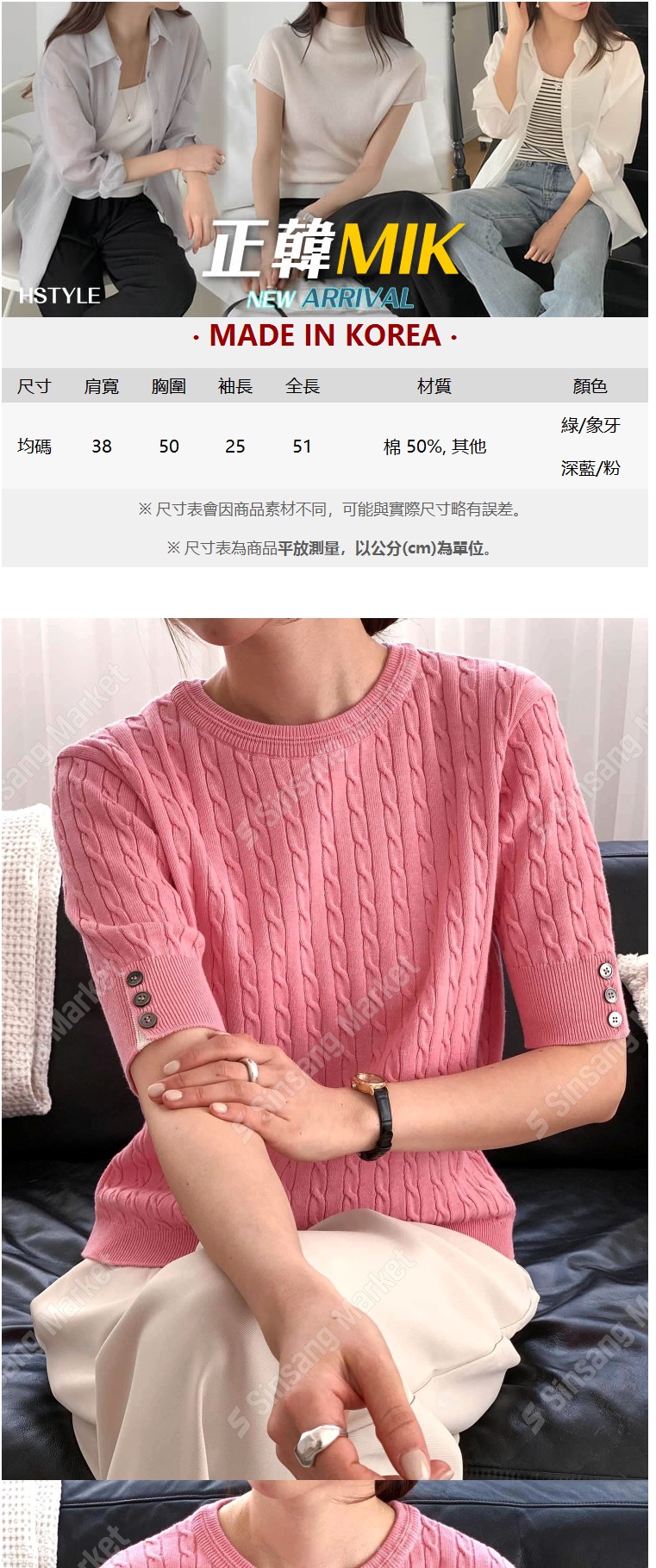 正韓女上衣 麻花紋短袖針織衫SOM1109-創翊韓都