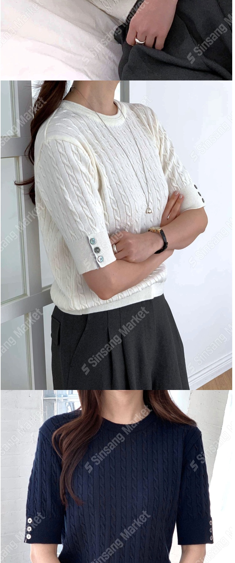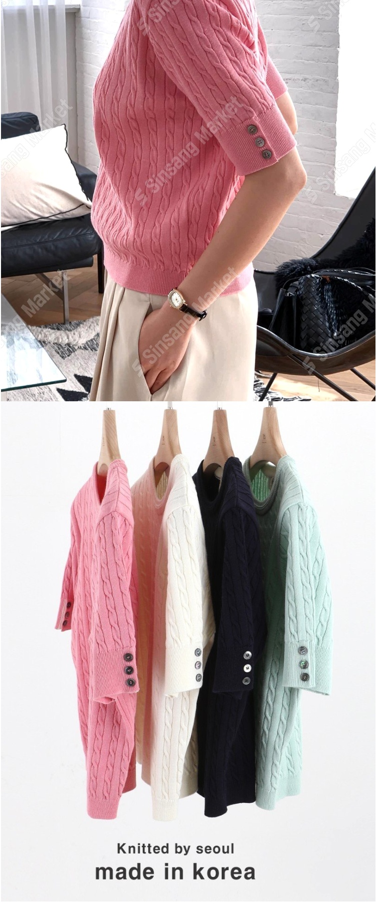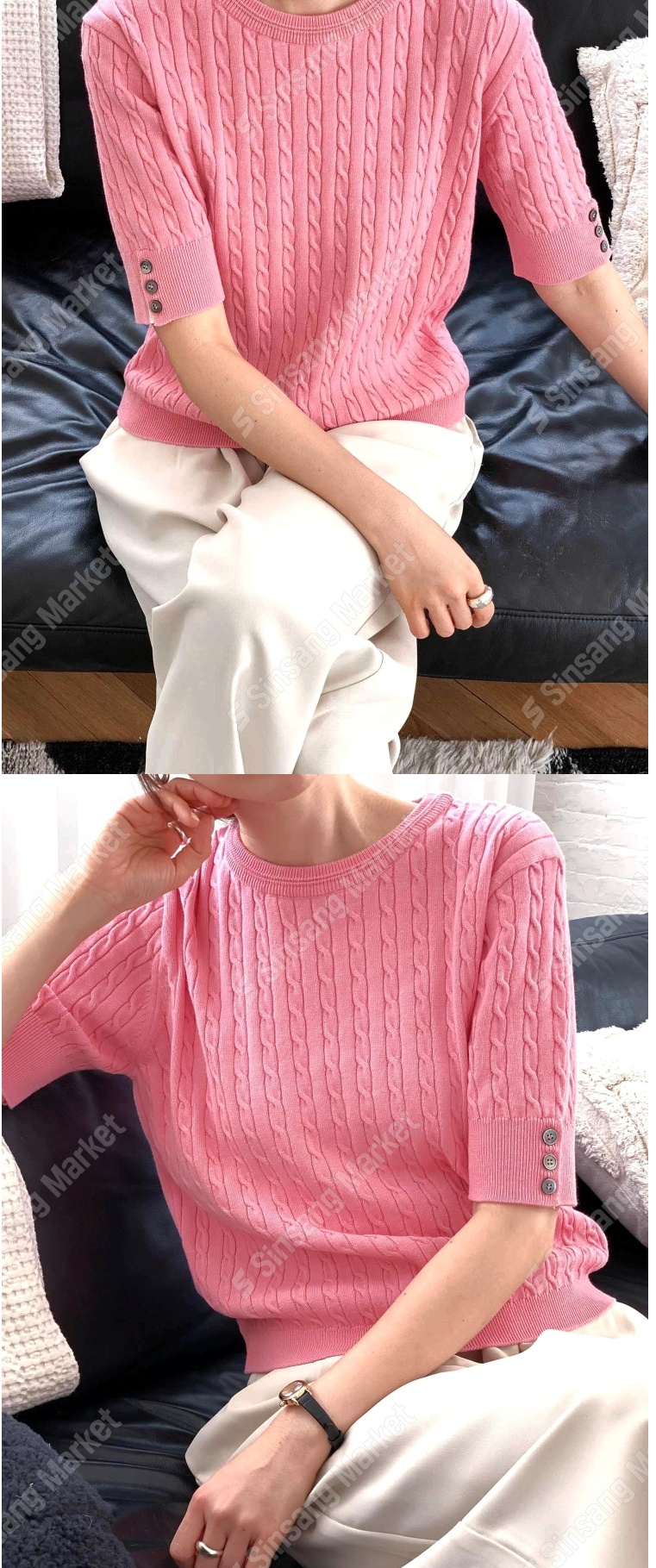 正韓女上衣 麻花紋短袖針織衫SOM1109-創翊韓都