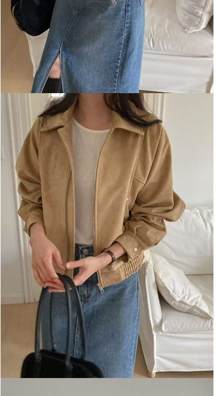 正韓外套 麂皮質感短版外套WHN1017-創翊韓都