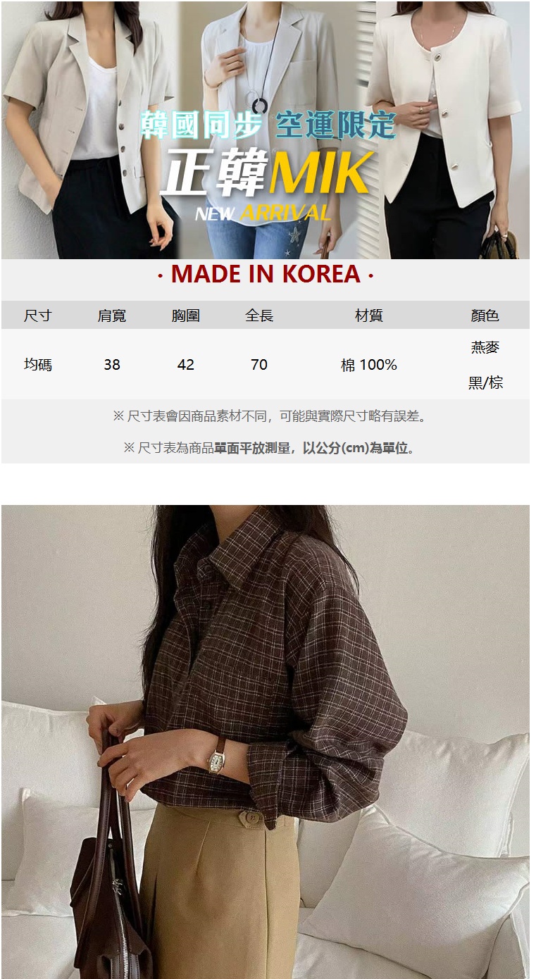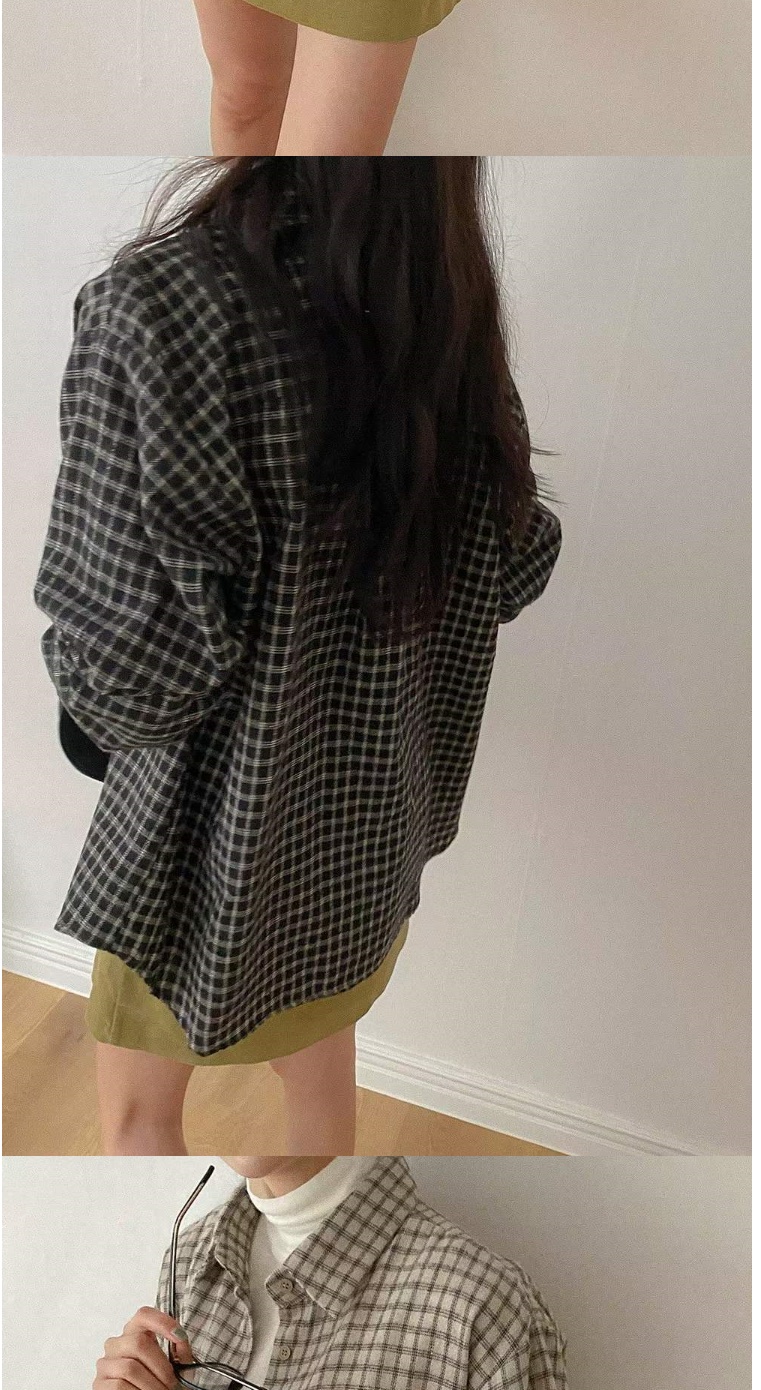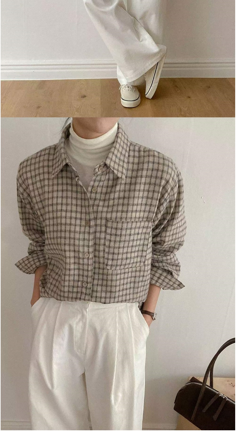 正韓女上衣 格紋刷毛長袖襯衫STP1089-創翊韓都
