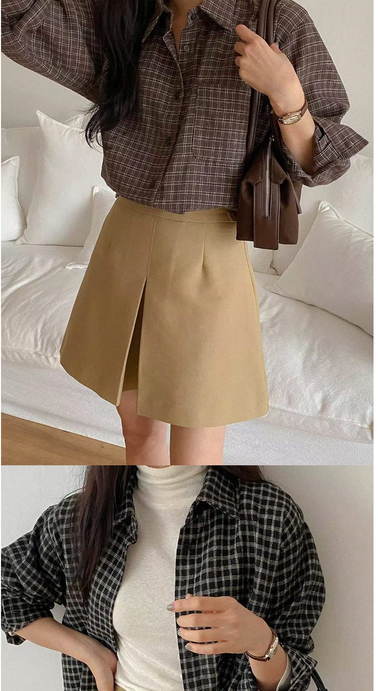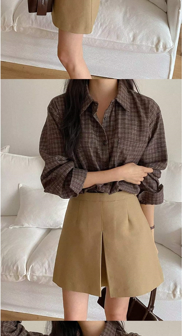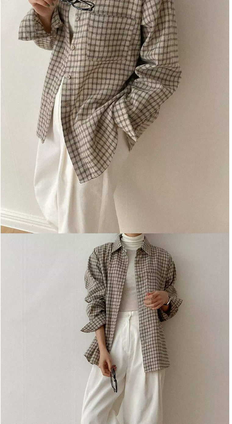 正韓女上衣 格紋刷毛長袖襯衫STP1089-創翊韓都