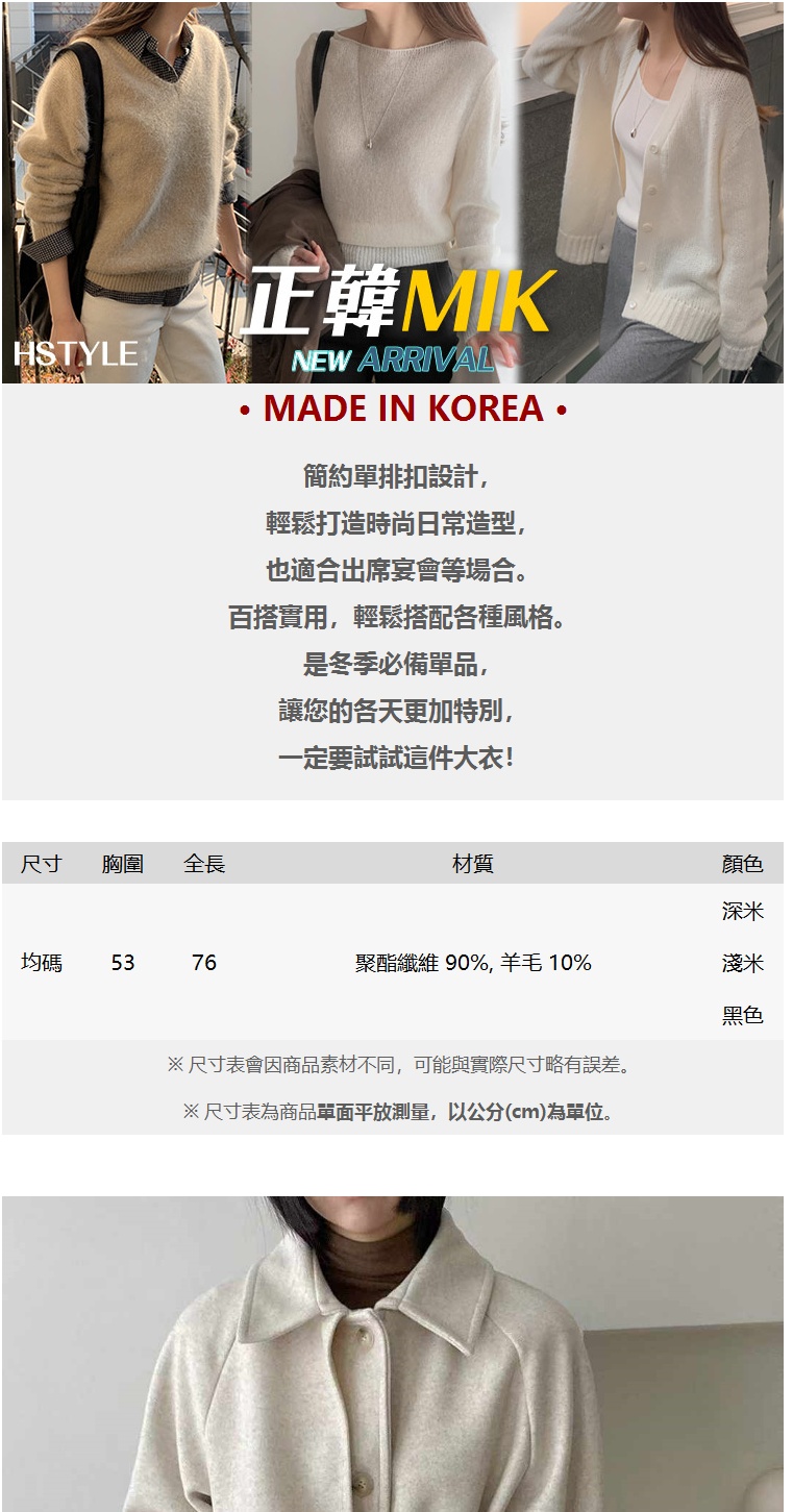 正韓外套 奧斯卡羊毛呢大衣STP1094-創翊韓都