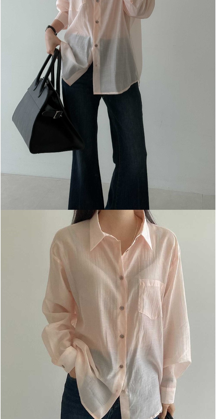 正韓女上衣 天絲透視長袖襯衫STP1100-創翊韓都