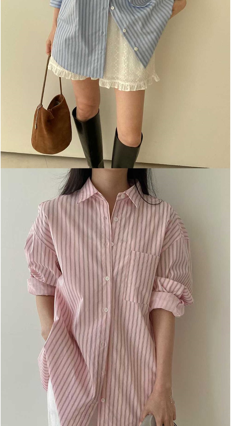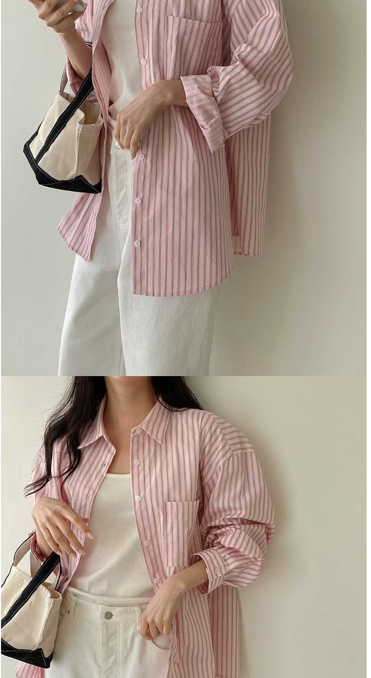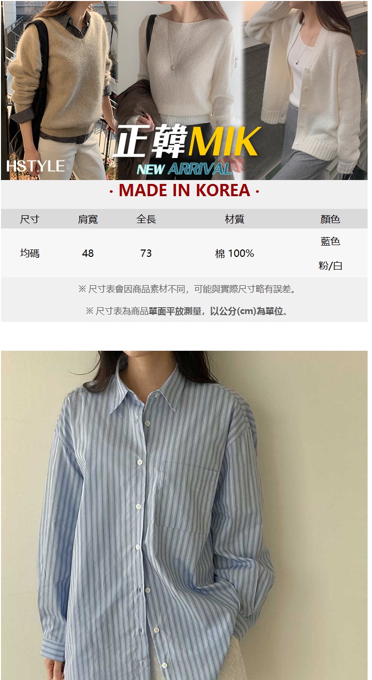 正韓女上衣 迪亞條紋長袖襯衫STP1102-創翊韓都