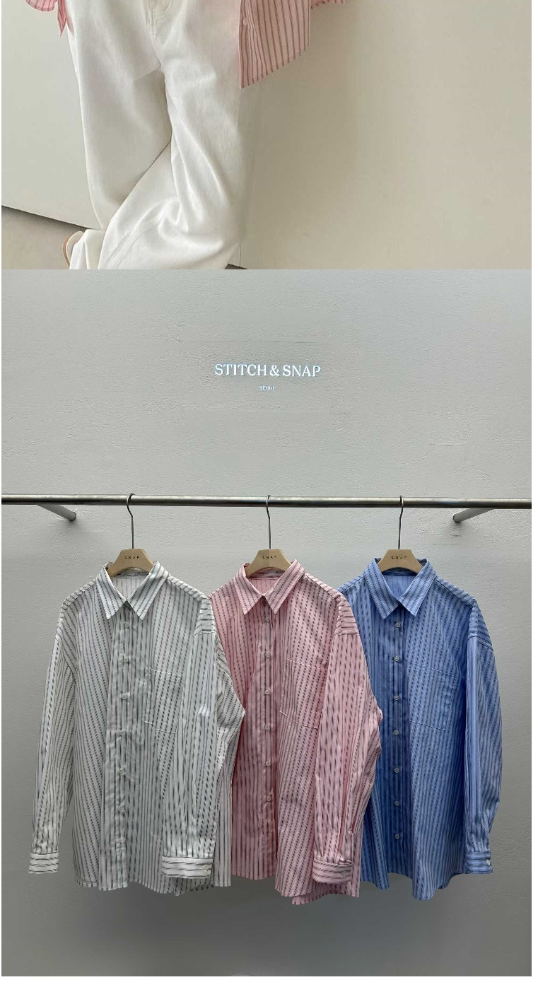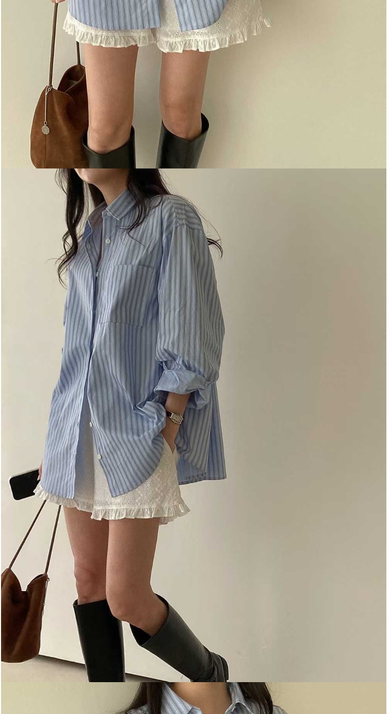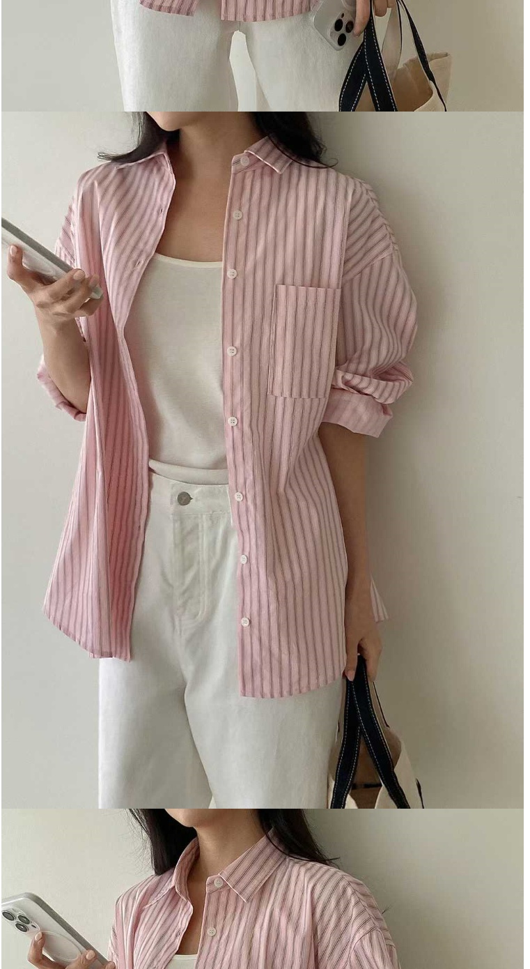 正韓女上衣 迪亞條紋長袖襯衫STP1102-創翊韓都