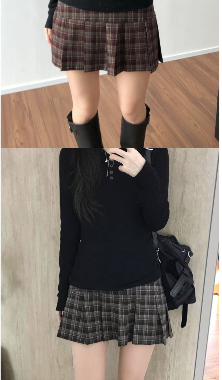 正韓短裙 羅亞格紋迷你褲裙VRT1001-創翊韓都
