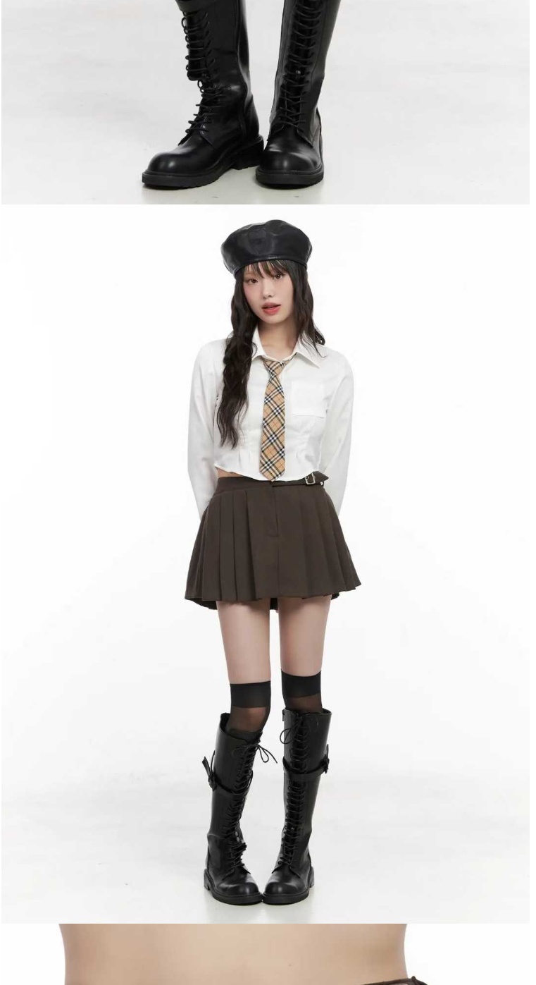 正韓短裙 高腰內襯百摺短裙WHN1014-創翊韓都