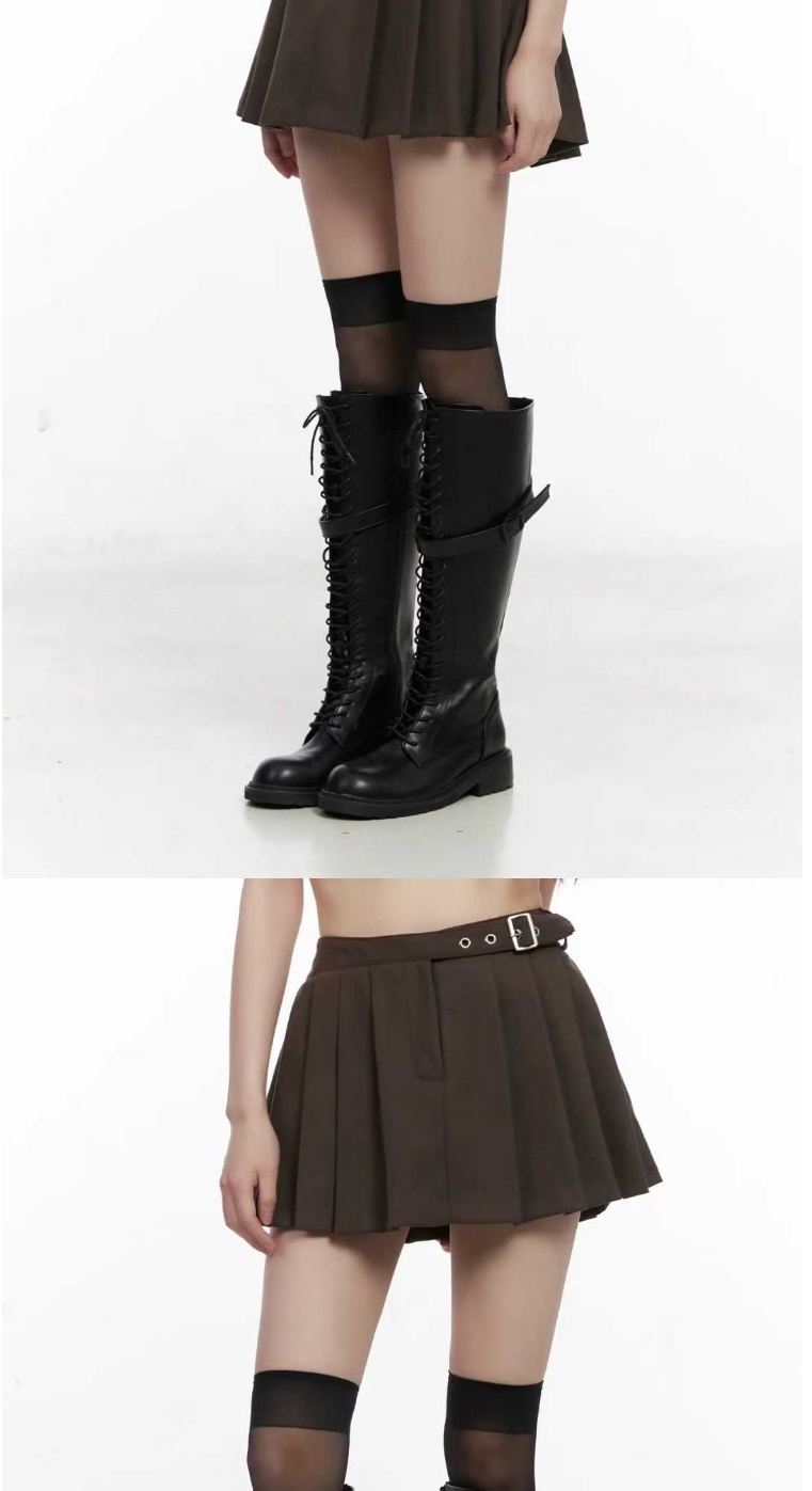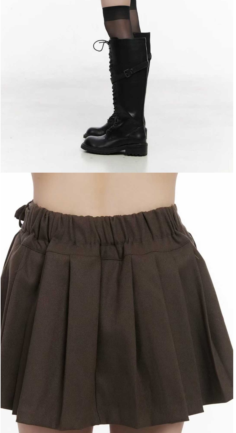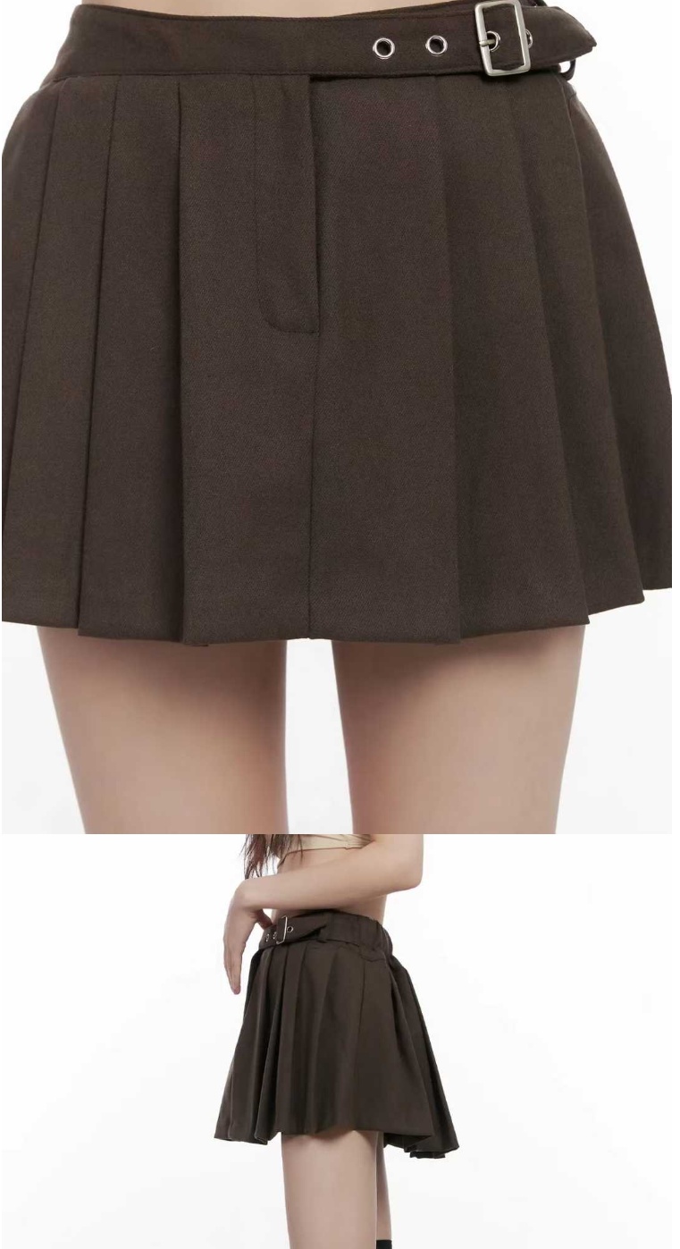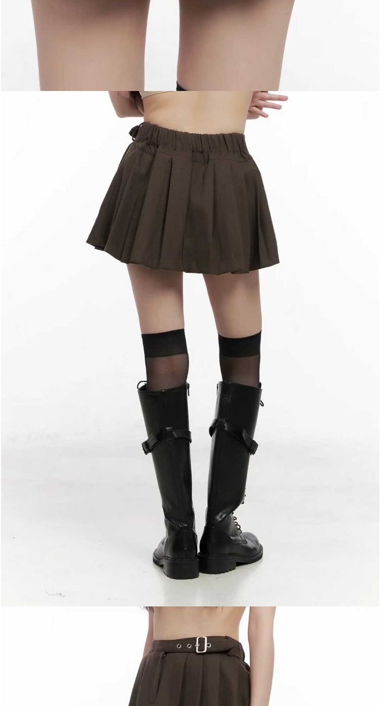 正韓短裙 腰帶百褶褲裙VRT1006-創翊韓都