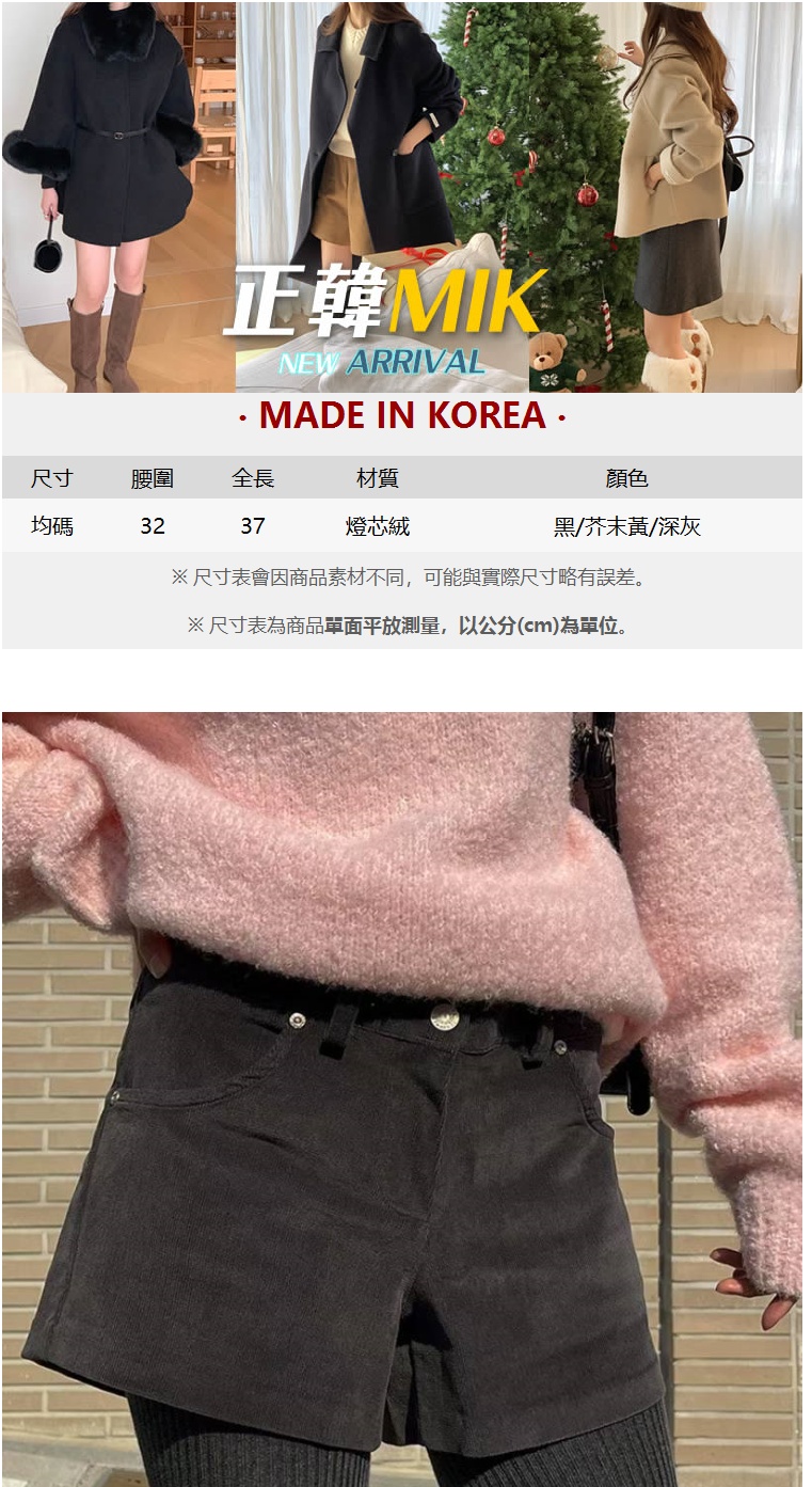 正韓短褲 鉚釘燈芯絨短褲VRT1008-創翊韓都
