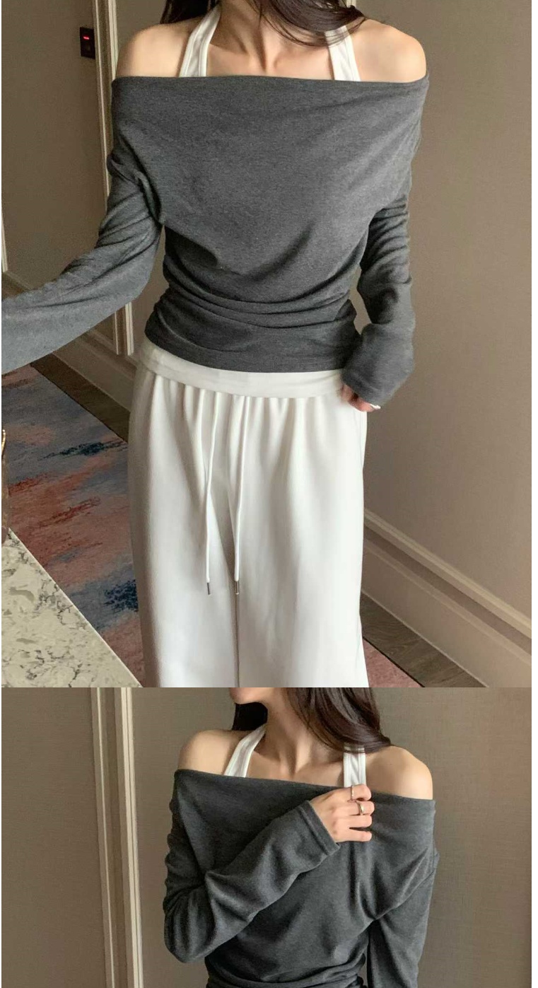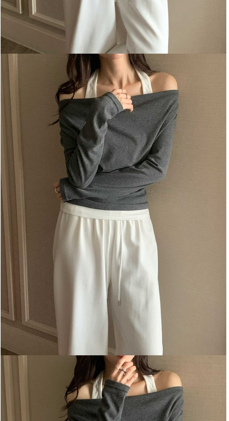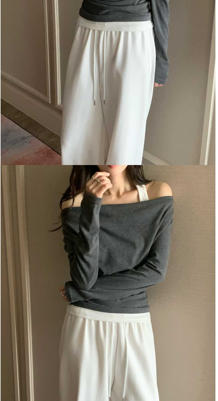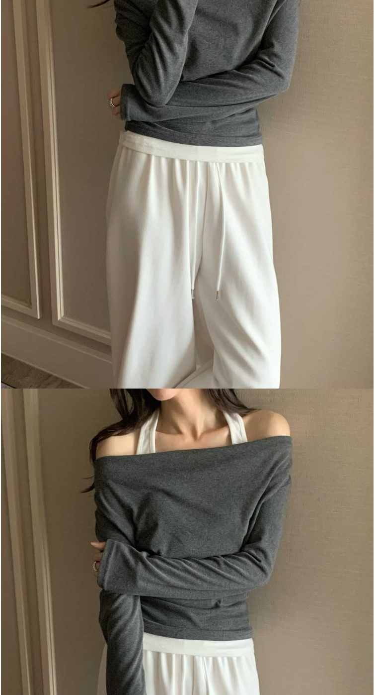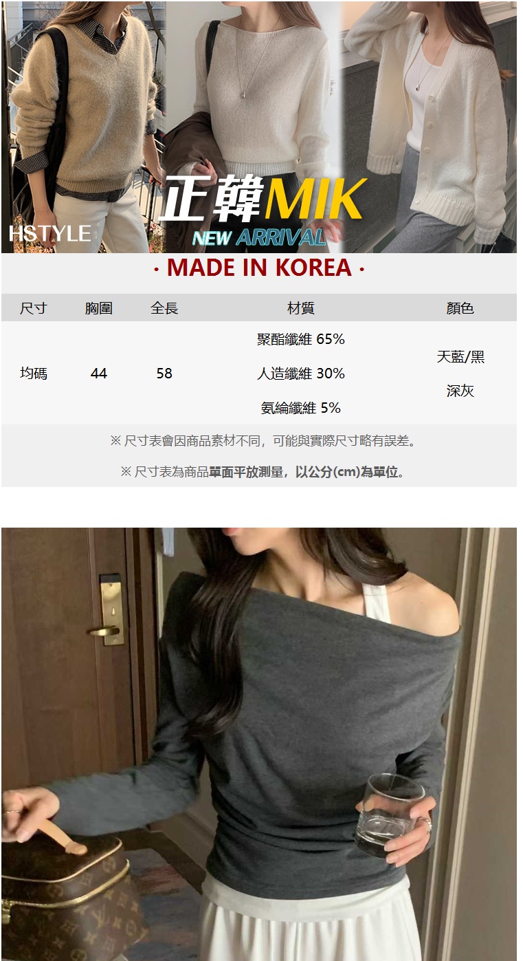 正韓女上衣 一字領露肩長袖T恤WHN1050-創翊韓都