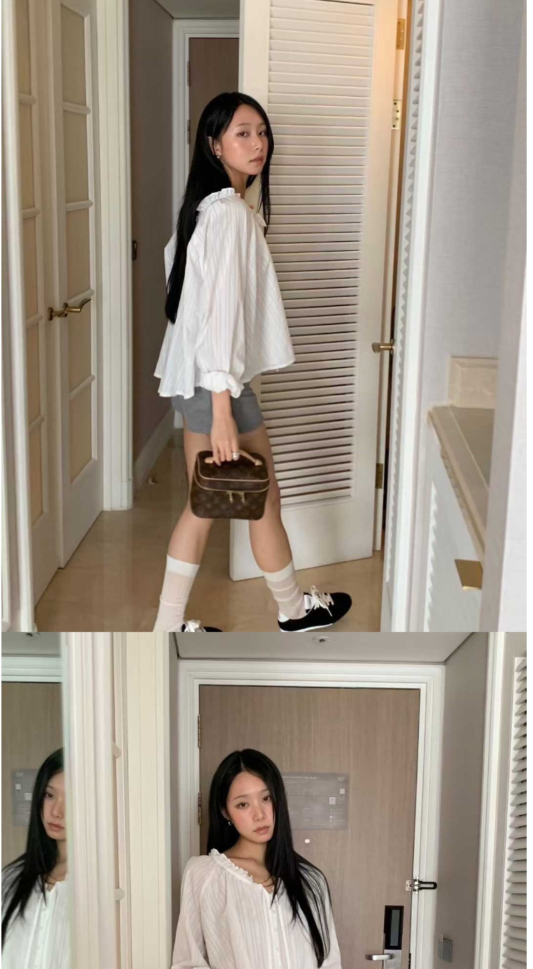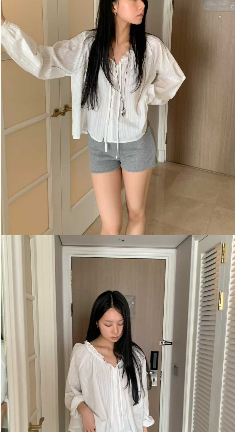 正韓女上衣 艾莉綁帶長袖襯衫WHN1057-創翊韓都